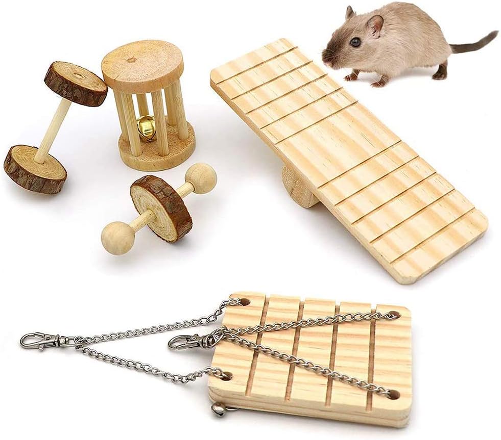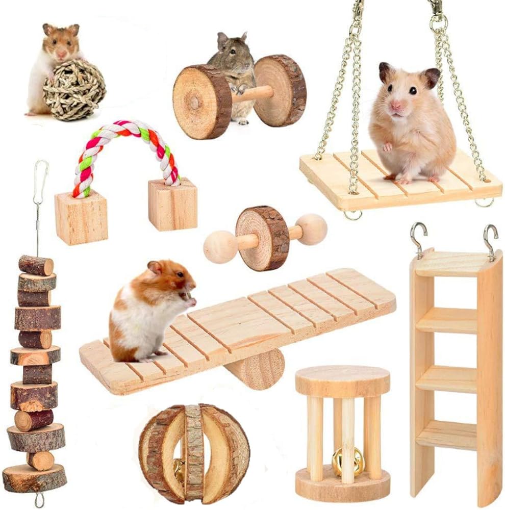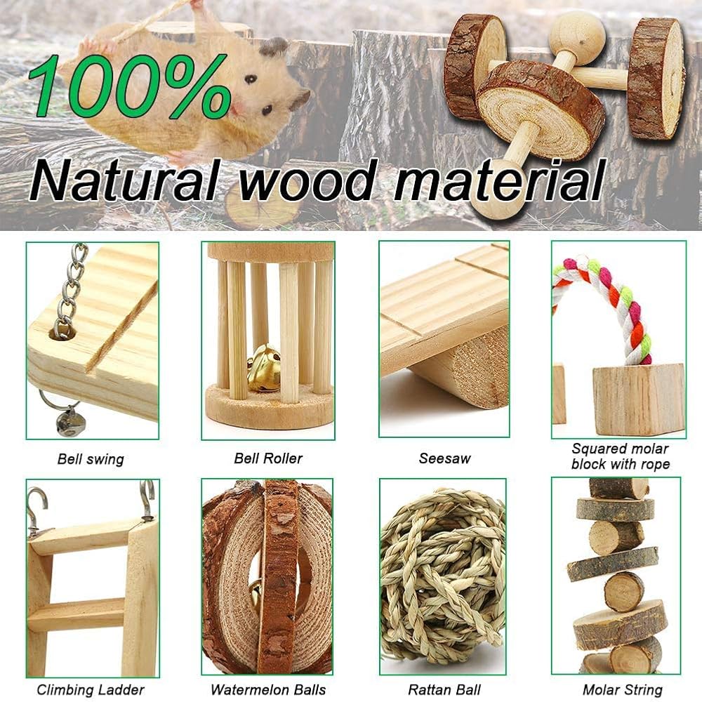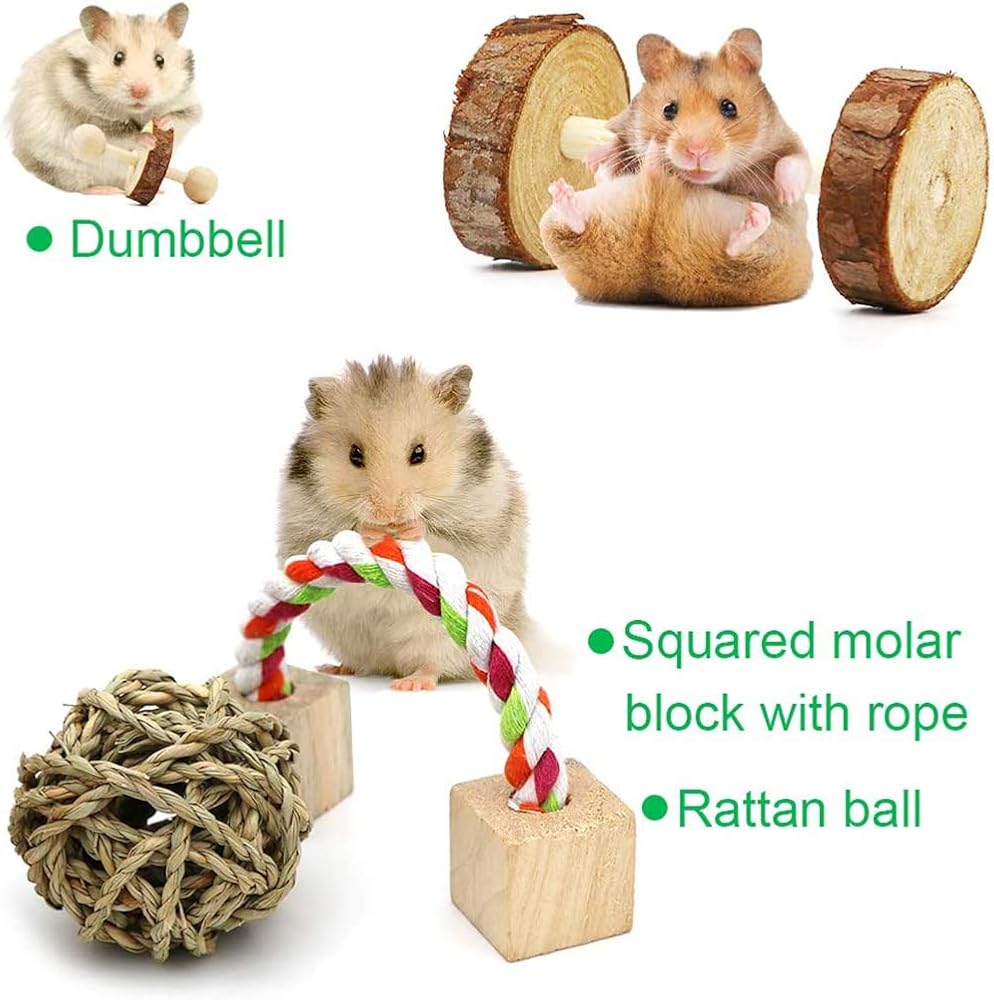 ألعاب مضغ الهامستر من LKJYBG، 10 قطع من الدمبل الخشبية الطبيعية للحيوانات الأليفة، لعبة مولار للعناية بالأسنان للببغاء الهامستر السوري جربيل الجرذ غينيا خنزير جيربيل إلخ. الحيوانات الصغيرة