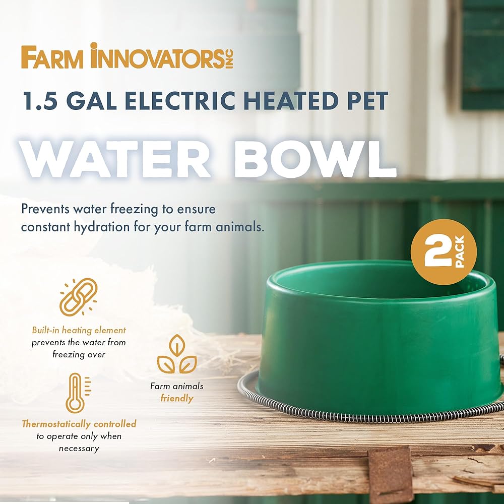 حافظ على سعادة حيواناتك الأليفة في الهواء الطلق هذا الشتاء مع وعاء مياه الحيوانات الأليفة الكهربائي بسعة 1.5 جالون من فارم انوفيتورز (عبوة من قطعتين). يحافظ وعاء الحيوانات الأليفة الساخن هذا على ماء حيوانك الأليف أو طعامه من التجمد خلال أشهر الشتاء الباردة. يتم التحكم في الوعاء الساخن حرارياً لتشغيله وإيقافه تلقائيًا اعتمادًا على درجة الحرارة حتى لا تضطر إلى مواجهة البرد لتشغيله وإيقافه. سعة كبيرة 1.5 جالون تسمح لك باستخدام الوعاء للعديد من الحيوانات الأليفة وإعادة ملئه بشكل أقل. يأتي وعاء الحيوانات الأليفة مع واقي سلك شديد التحمل مضاد للمضغ لمنع حيوانك الأليف من المضغ عبر سلك الطاقة. مع طاقة 60 واط، يسخن وعاء الحيوانات الأليفة الكهربائي بسرعة وكفاءة لتزويد حيوانك الأليف بمياه شرب آمنة وطعام. سواء كان لديك قطط حظيرة أو كلاب خارجية أو حيوانات أليفة أخرى، تأكد من تغطيتها لفصل الشتاء مع وعاء المياه الكهربائي للحيوانات الأليفة بسعة 1.5 جالون من فارم انوفيتورز (عبوة من قطعتين).