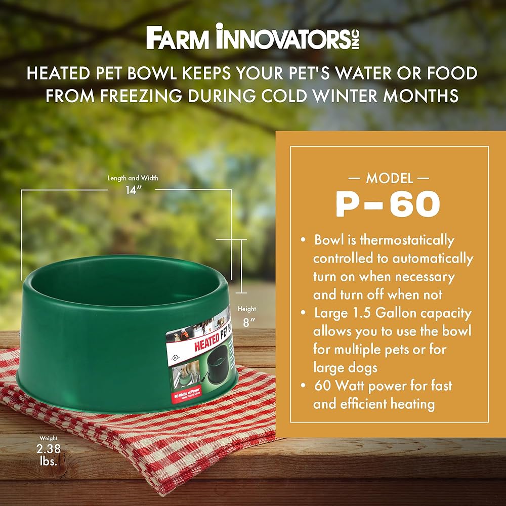 وعاء ساخن للحيوانات الأليفة: يحافظ وعاء الحيوانات الأليفة الساخن على ماء حيوانك الأليف أو طعامه من التجمد خلال أشهر الشتاء الباردة؛ اللون: أخضر؛ المادة: بلاستيك؛ الكمية: 2