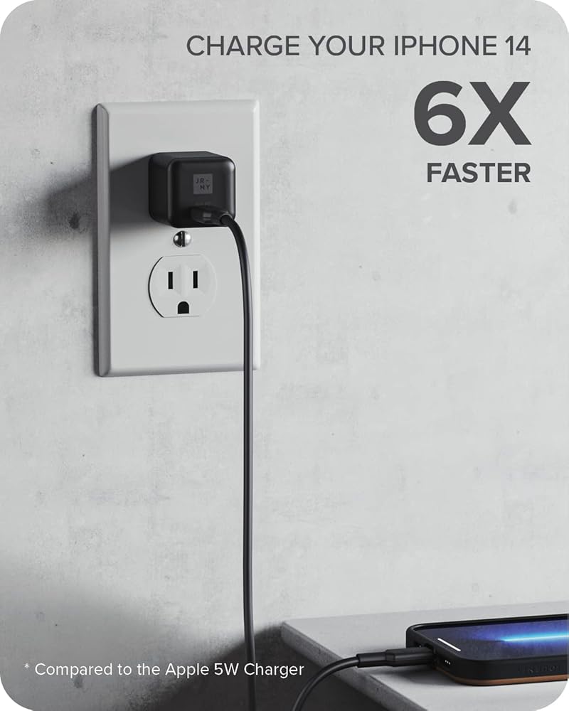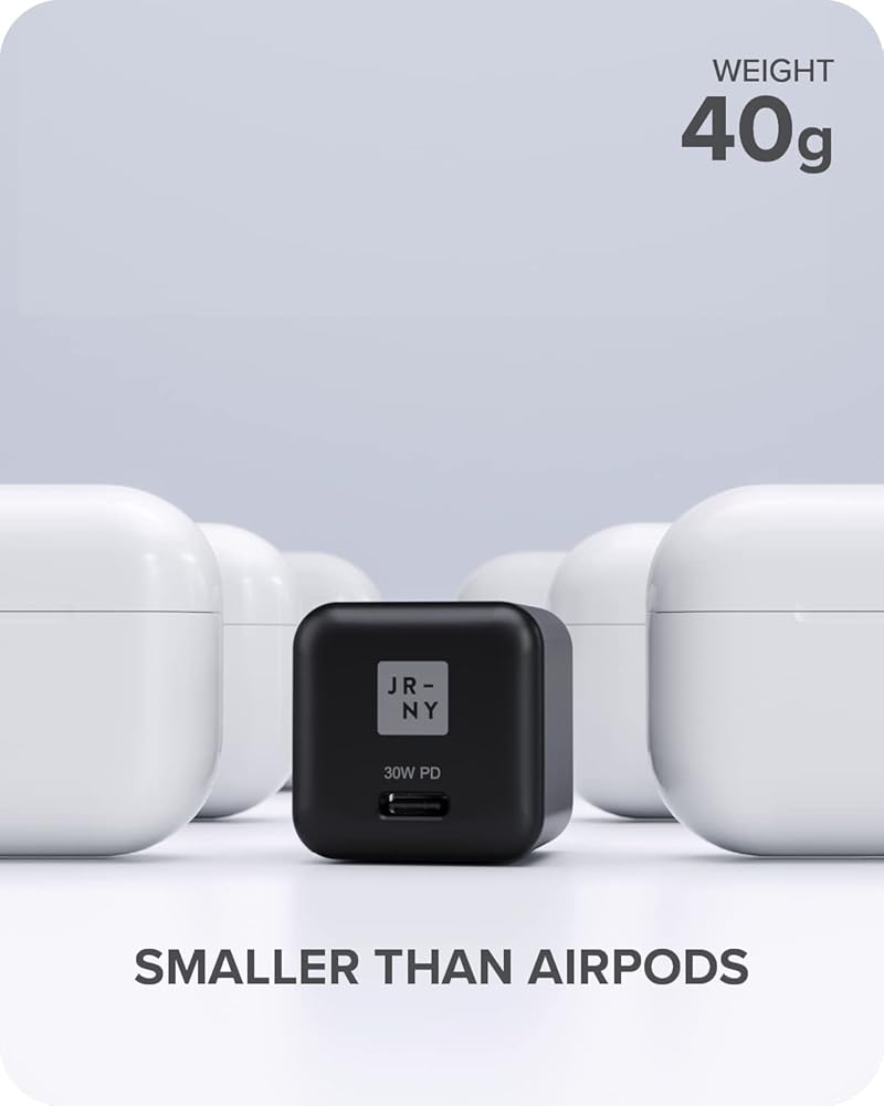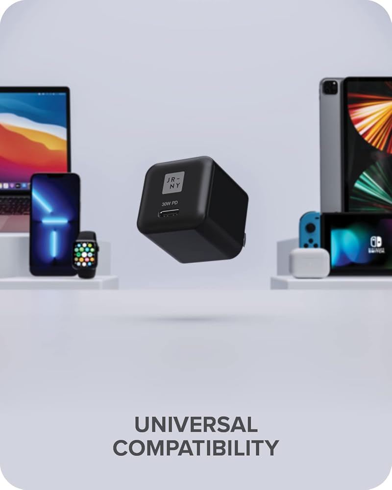 شاحن حائط صغير بقدرة 30 وات من JOURNEY مزود بتقنية Gan II وPD 3.0 للشحن السريع. متوافق مع أجهزة MacBook Air وiPhone 14 Pro/14 ProMax وGalaxy S23 Ultra والمزيد.