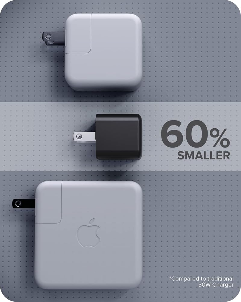 تعزيز الطاقة بقدرة 30 وات: بفضل تقنية توصيل الطاقة المتطورة (PD)، استمتع بأسرع سرعة شحن ممكنة. يمكن لشاحن الحائط الصغير هذا أن يشحن أجهزتك بسرعة، بما يصل إلى مرتين أسرع من أجهزة الشحن القياسية، وذلك بفضل مخرجاته الرائعة البالغة 30 واط.