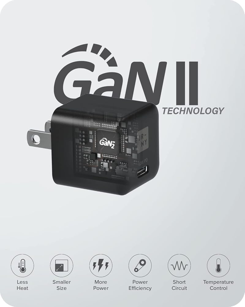 تقنية GaN-II المتقدمة: تم تصميم الشاحن الخاص بنا باستخدام تقنية GaN-II السريعة المتطورة ولوحة دائرة مطورة، مما يوفر زيادة في خرج الطاقة مع الحفاظ على درجة حرارة منخفضة. والنتيجة هي شحن فعال وموثوق، في تصميم صغير جدًا.