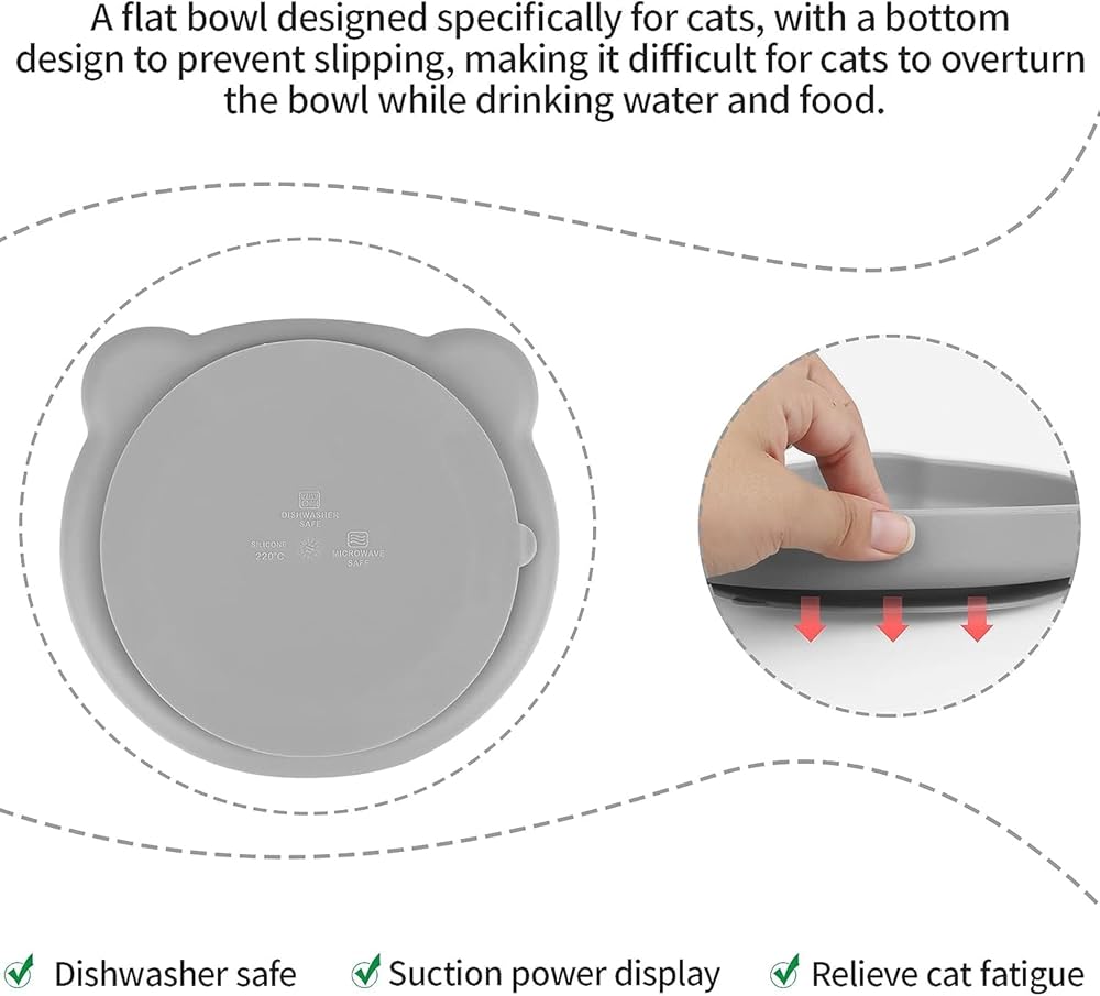 نظام مضاد للانزلاق - تتميز أطباق القطط بقاعدة من السيليكون المضاد للانزلاق والتي تمنع الانزلاق أثناء تناول قططك الطعام. إن كوب الشفط المصنوع من السيليكون يجعل أطباق القطط أكثر استقرارًا ولا تنقلب بسهولة عند تناول الطعام.