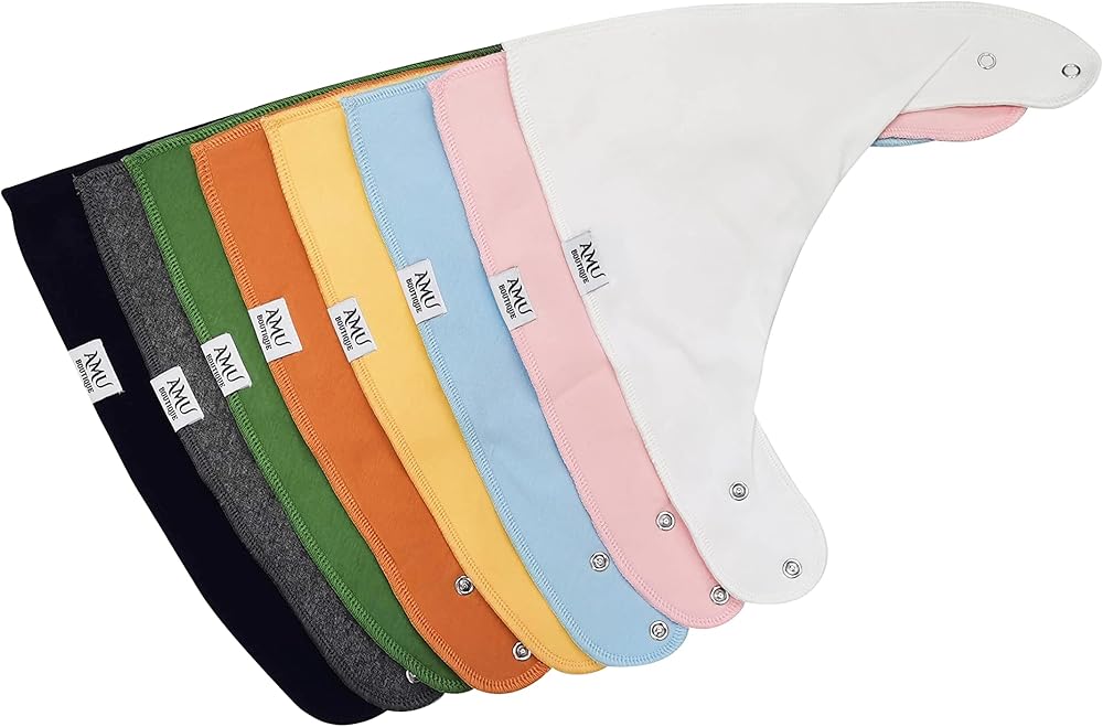 soft plain round bandana cotton baby drool bibs beautiful high quality muslin bibs, gorgeous color and perfect for coordinating a nice outfit and capturing all the dribble -8-pack- for baby boy, baby girl, feeding, drooling covers | adjustable snaps for infants and toddlers | 100% cotton, keeps your baby clean and comfortable all the times
