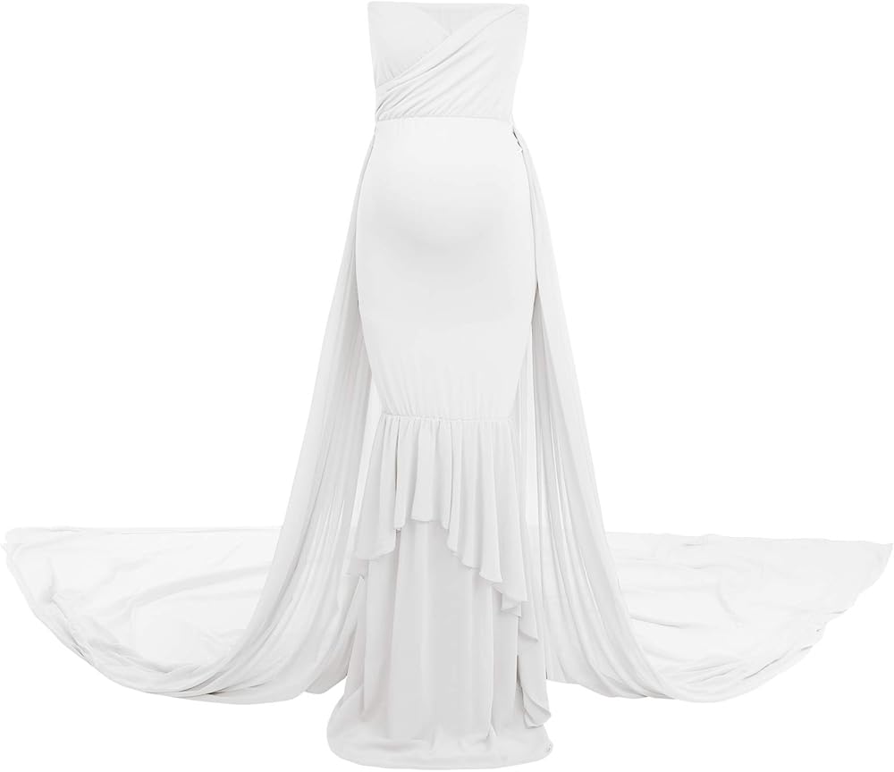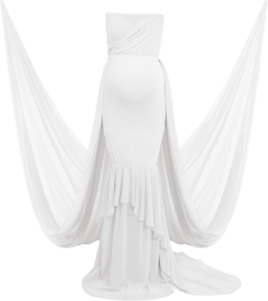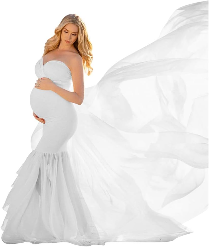 3. فستان حمل بتصميم حورية البحر متعب لالتقاط الصور الفوتوغرافية وحفلات استقبال المولود الجديد، فستان طويل للحوامل للتصوير الفوتوغرافي