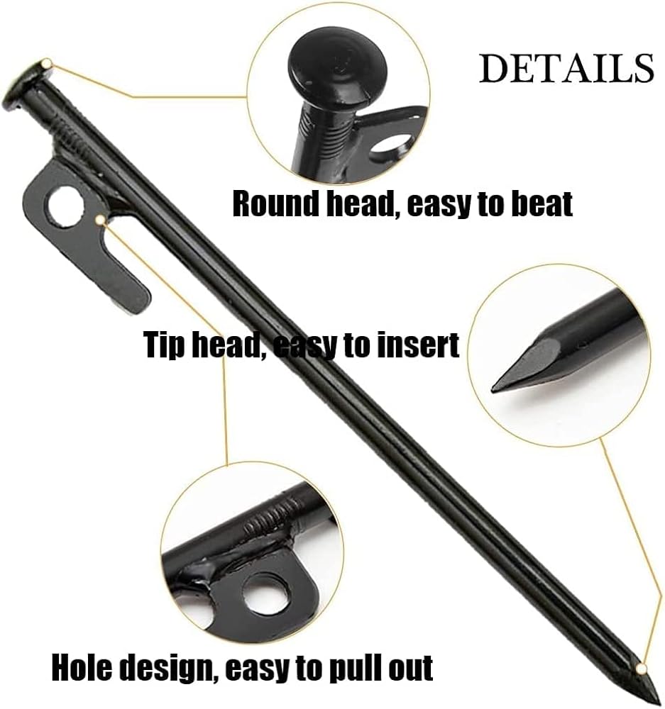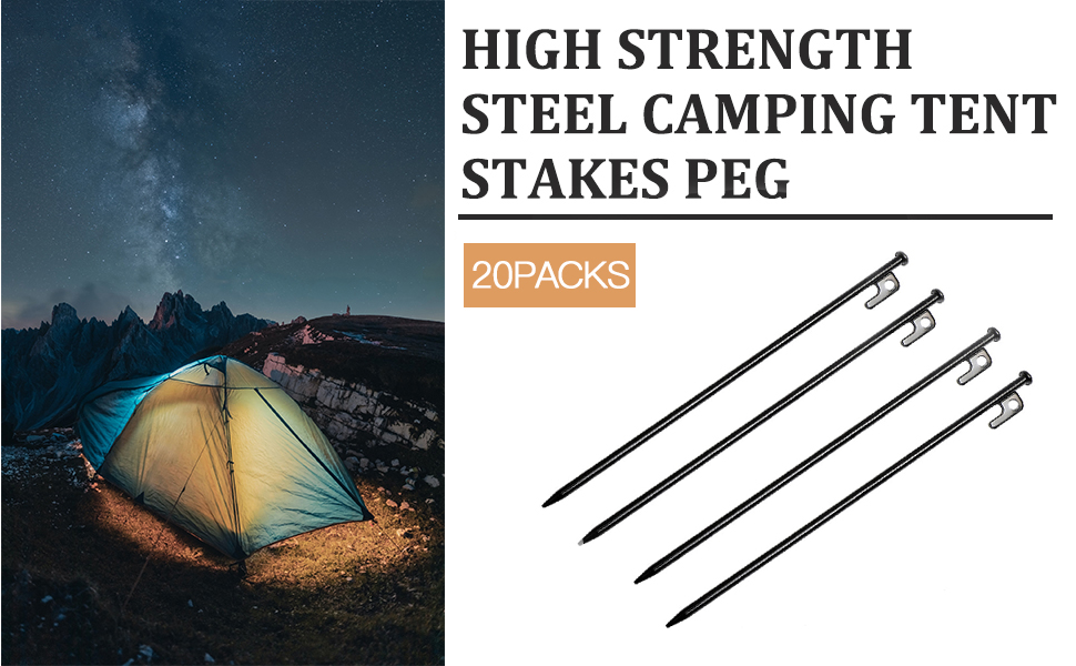 【شديدة التحمل】الأوتاد مصنوعة من الستيل المطروق عالي الجودة، غير قابلة للكسر وغير مرنة لخيم التخييم، أوتاد الخيمة الفولاذية شديدة التحمل متعددة الاستخدامات ومناسبة لأي نوع من الأرضيات. عندما تكون أنت وعائلتك في الخارج للتخييم، فهي حقًا خيار جيد بالنسبة لك، ويمكن أن تجعل خيمتك أقوى، حتى في الطقس السيئ يمكن أن تبقي خيمتك غير متأثرة.