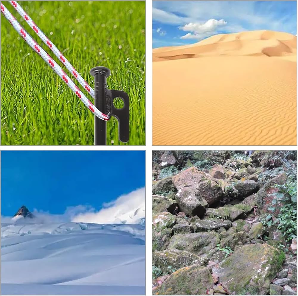 【مجموعة واسعة من الاستخدامات】يمكن استخدامها في مجموعة متنوعة من الأماكن والعشب والصحاري والجبال الثلجية والصخور بسبب متانتها وعدم قابليتها للكسر. خذها معك واذهب للتخييم البري مع عائلتك! (عند استخدامه، من الأفضل جعله بزاوية 60 درجة على الأرض، مما يجعله أكثر استقرارًا)