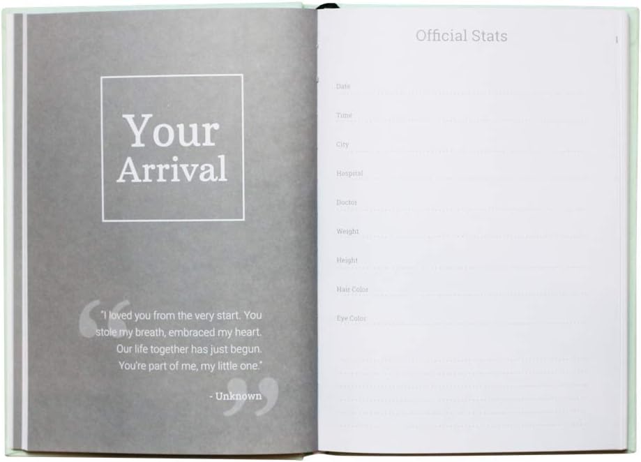 • كتاب أطفال مصمم بشكل جميل: كل دفتر يوميات ملفوف بالكتان الفاخر، صلب وصغير بما يكفي لأخذه معك في أي مكان تذهب إليه. تم تصميم كل دفتر باقتباسات ذات مغزى وملهمة، ويحتوي على 160 صفحة لمساعدة الوالدين على تأريخ رحلتهم بسهولة من الحمل وحتى السنة الأولى للطفل.