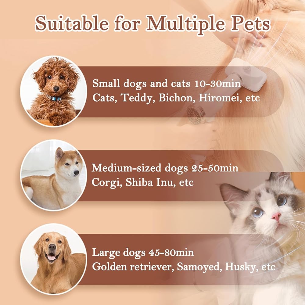 【تصميم علمي】تم تصميم مجفف العناية بالحيوانات الأليفة بشكل مريح ويمكن حمله بيد واحدة، مما يجعل استخدامه أسهل. يسهل الجسم المحمول خفيف الوزن وسلك الطاقة الطويل رعاية حيواناتك الأليفة. بعد الاستخدام، تساعدك بنية الإطفاء المبتكرة بلمسة واحدة على تنظيف الفرشاة بسهولة.