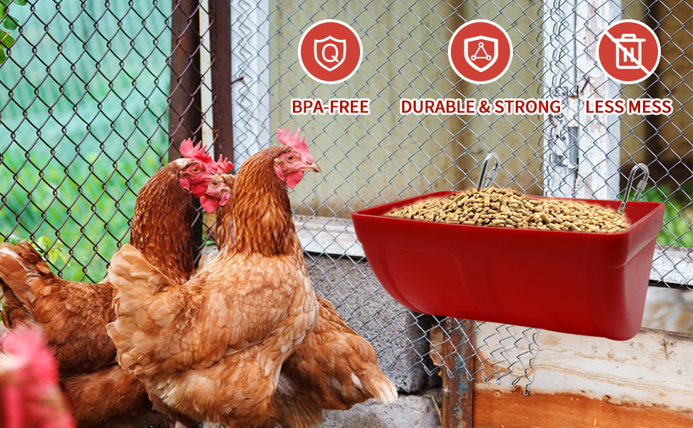 🦆【بدون نفايات ولا فوضى】 تم تصميم حوض تغذية الدجاج المعلق الخاص بنا خصيصًا لمنع الحيوانات من تناول الطعام على الأرض، وتقليل انسكاب الطعام لتقليل الفضلات، والحفاظ على الطعام طازجًا وجافًا لتغذية دواجنك جيدًا، وتبني عادات الأكل الصحية. قل وداعًا للمزرعة الفوضوية وحظيرة الدجاج!