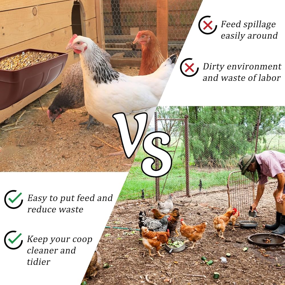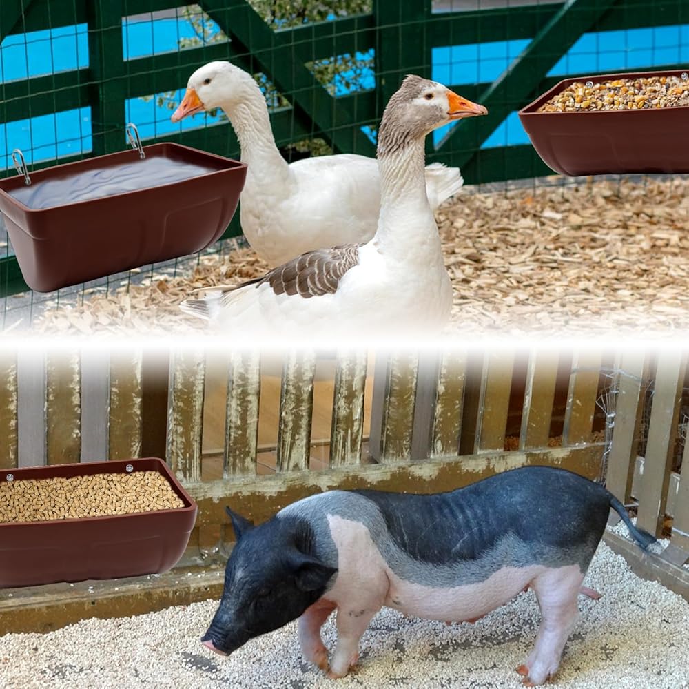 🐏【مغذي حبوب لطيف للدواجن】حوض تغذية الدجاج عميق بما يكفي لاستيعاب كمية جيدة من العلف و/أو الماء. مثالية للتغذية المعدنية أو الحبوب لمعظم الدواجن والماشية الصغيرة، مثل الدجاج والأوز والديك الرومي والبط والماعز والأغنام والغزلان والخنزير الصغير والمهر والقطط والكلاب والمزيد.