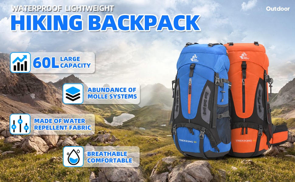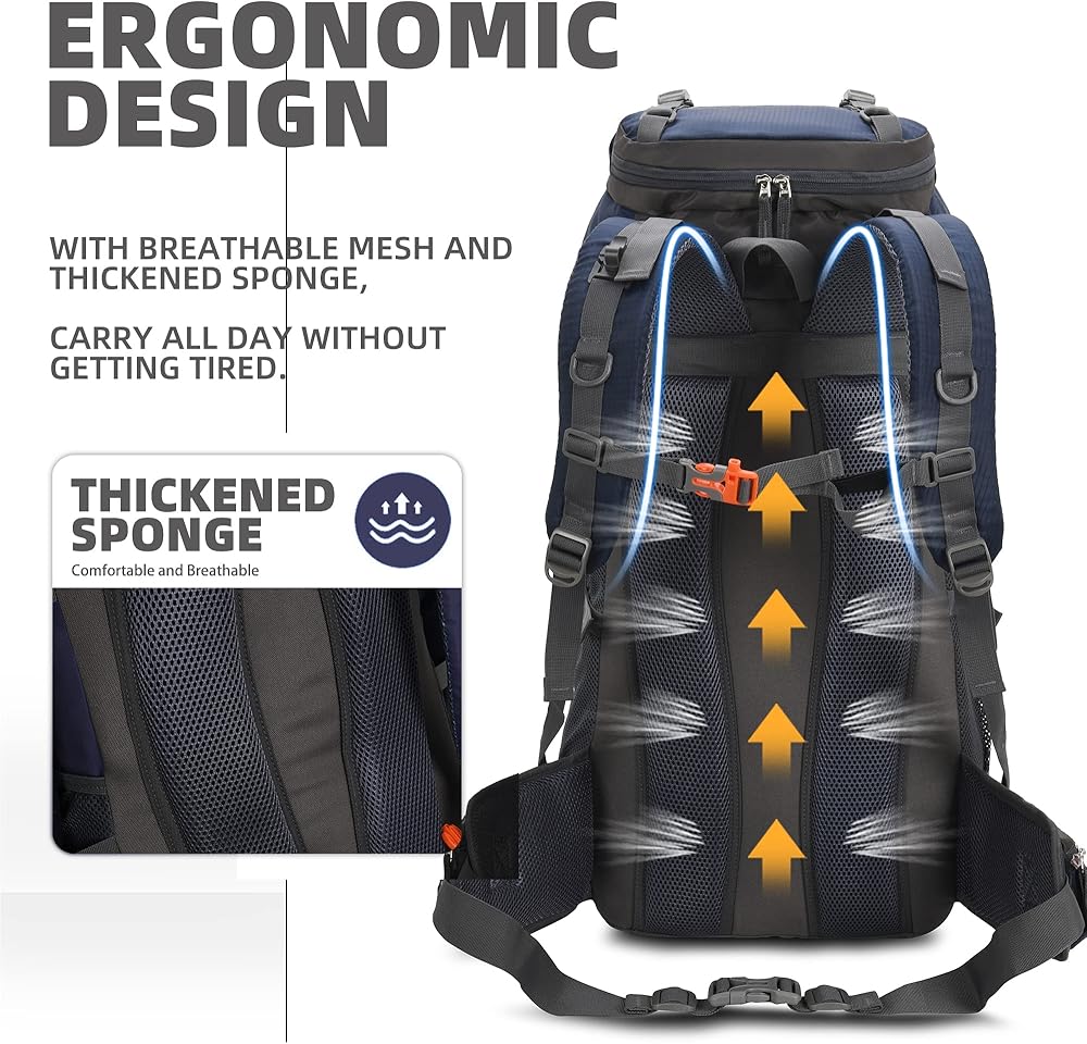 • حقيبة ظهر محمولة للاستخدام الخارجي: حقيبة الظهر خفيفة الوزن خفيفة للغاية، وسعة كبيرة 60 لترًا تبلغ 2.1 رطل فقط، والحد الأقصى للوزن هو 33 رطلاً. المقاس الموسع: 68*33*20 سم / 26.77*13*7.87 بوصة، مما يلبي متطلبات الحجم لمعظم شركات الطيران، لا حاجة للتحقق.