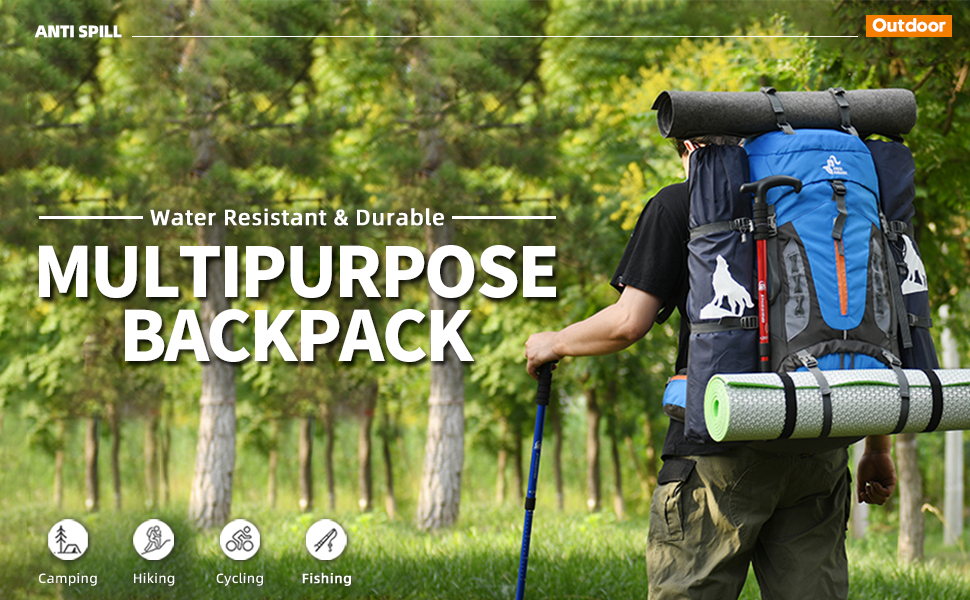 • حقيبة متينة مقاومة للماء: حقيبة ظهر التخييم مصنوعة من بوليستر سميك للغاية ومقاوم للتمزق والماء والتآكل. يتم تعزيز جميع نقاط الضغط بمفاصل من أجل عمر خدمة أطول. تأتي حقيبة الصيد مع غطاء للمطر، لذلك لا داعي للخوف من المطر الغزير.