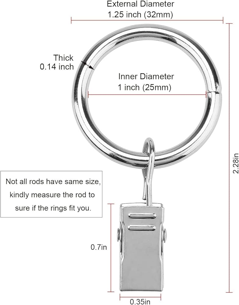 قم بتعليق الستائر بسهولة باستخدام حلقات مشبك الستائر OOTSR ذات القطر الداخلي 3.81 سم، مجموعة من 16.