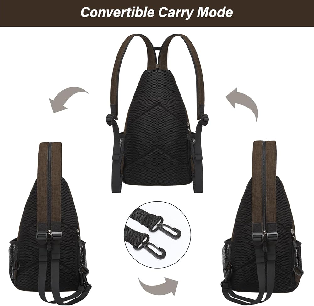 This crossbody sling backpack has enough space for water bottle and other gear you want to carry for a short hiking travel. Two shoulder straps are connected by a durable zipper, can easily convert this bag from a sling bag to a backpack. Sling design makes it quick to turn from your back to the front. This sling bag is suitable for women men, suitable for outdoor sports (hiking, cycling, biking, walking, running, camping, climbing), office and business.