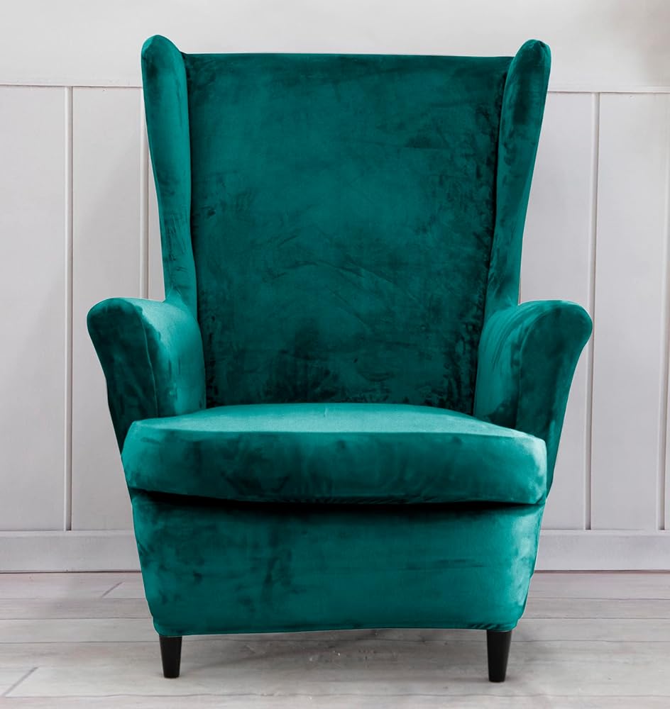 2 Piece Velvet Wingback Chair Covers for Living Room Armchair Removable Wingback Chair Slipcovers with Cushion Cover