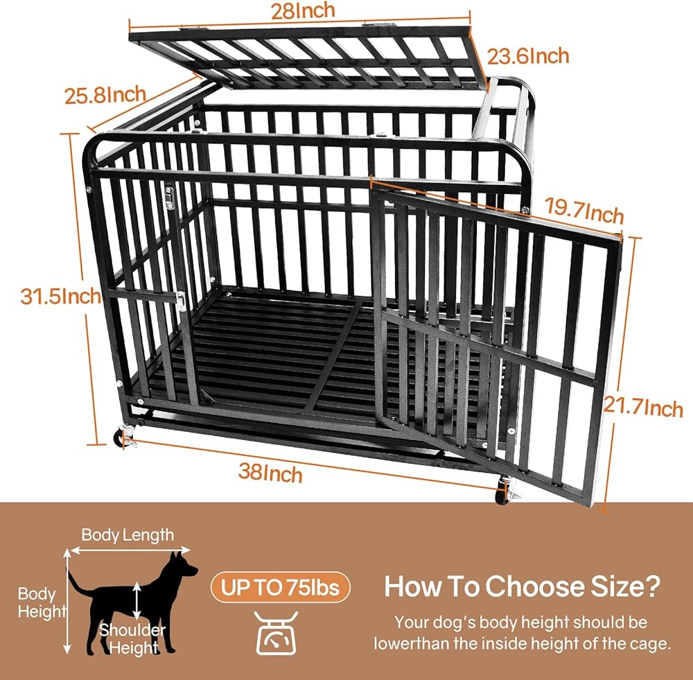 38 انش قيمة مقابل المال قفص الكلاب شديد التحمل: الأبعاد الكلية: 38 انش طول × 25.8 انش عرض × 31.5 انش ارتفاع؛ الأبعاد الداخلية (لا تشمل العجلات): 36.2 انش طول × 24.4 انش عرض × 25.6 انش ارتفاع. نوصي بشدة بتقييم حجم بيت الكلب الخاص بك كلب كلب من تلميح طرف الذيل.