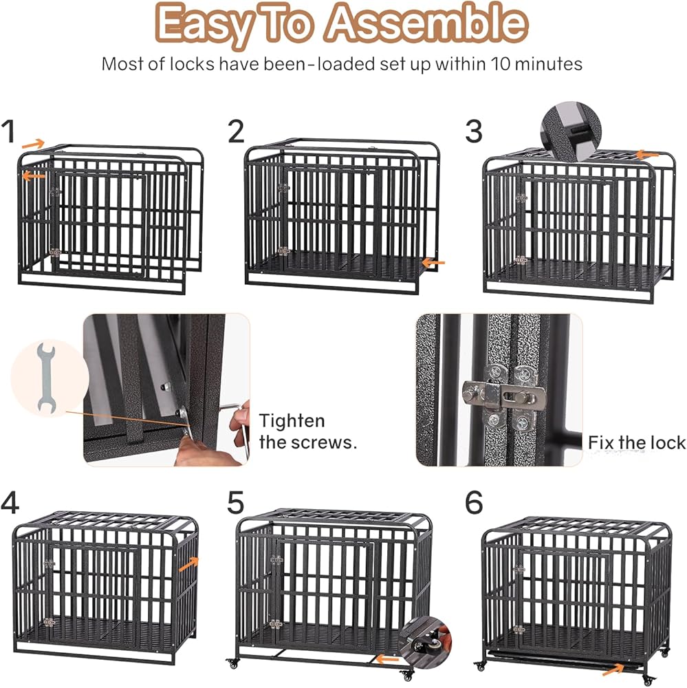 يتم تجميعه في 10 دقائق: يأتي قفص الكلاب هذا مع تعليمات وأداة مفك براغي، ويتطلب شخصين لإكمال التجميع - من السهل البدء باستخدام عدد قليل من البراغي. عادة، يمكن للأشخاص إنهاء التركيب في غضون 10 دقائق. سنبذل قصارى جهدنا لمساعدتك في أي مشاكل تواجهها. لا تتردد في الاتصال بنا إذا كنت بحاجة إلى مساعدة.