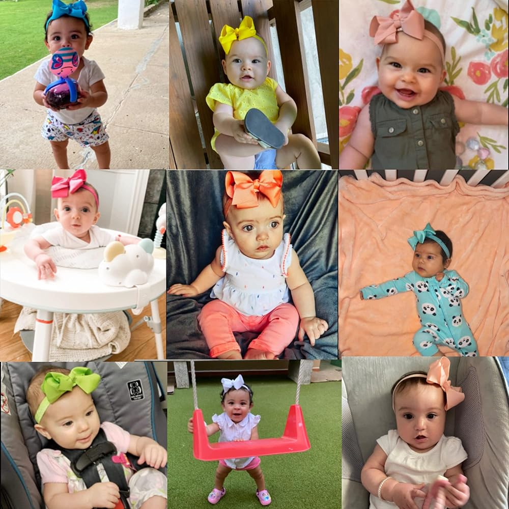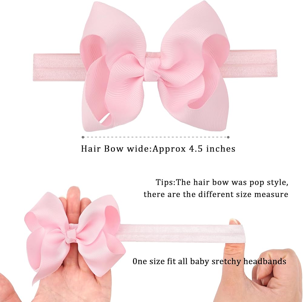The baby girls headbands are made of grosgrain ribbon hair bows + elastic nylon headbands.Super soft and stretchy headbands,they won't leave marks on baby's head. They fit baby to adults.We offer 20 different Colors of super cute hair bows with elastic hairbands.The colors of hair band match the color of the bows.Best gift choice for your baby or your friend who has a baby for baby shower, birthday party and family photo,Christmas,souvenir,holiday and etc.