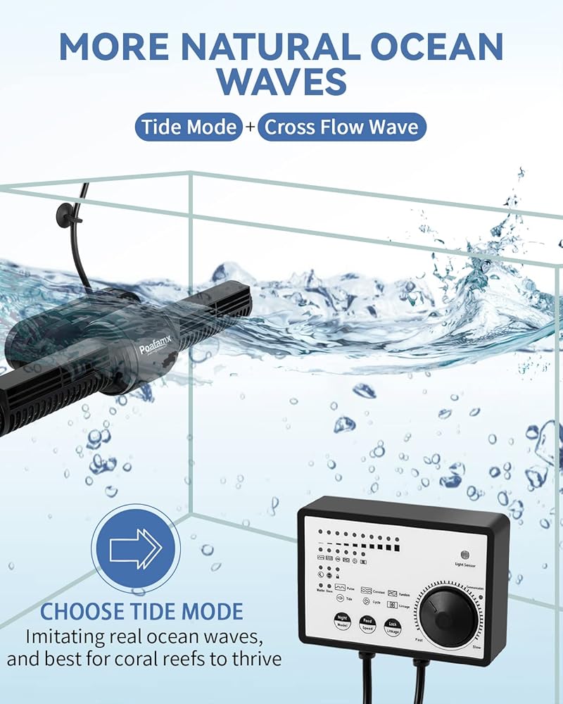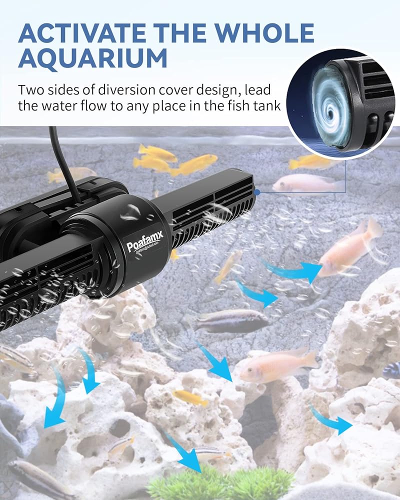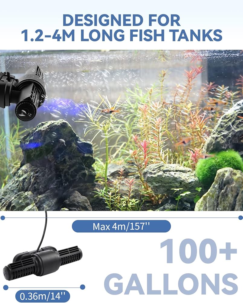 Poafamx 50W Wave Maker لحوض السمك، صانع الموجات مع وحدة تحكم لخزان أسماك بطول 1.2 متر/3.9 قدم على الأقل أكثر من 100 جالون، رأس طاقة قابل للتعديل لحوض السمك للمياه المالحة والمياه العذبة مضخة تداول مغناطيسية