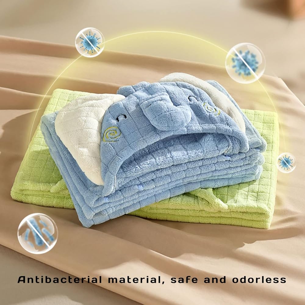 منشفة حمام أطفال فائقة الامتصاص - منشفة تيري مزدوجة الطبقات أكثر سمكًا ونعومة من مناشف الحمام ذات القلنسوة الأخرى. يساعد الامتصاص السريع للماء على إبقاء الطفل جافًا ودافئًا بعد الاستحمام، مثل الأم التي تحمل الطفل بين ذراعيها وتغلفه بالكامل.