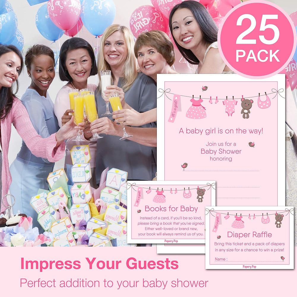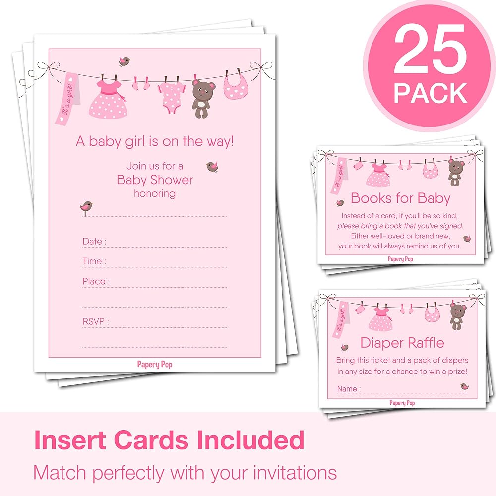مجموعة من 25 دعوة و25 ظرفًا و25 تذكرة سحب حفاضات و25 كتابًا لبطاقات حفل استقبال المولود الجديد