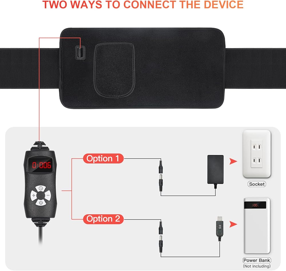 مرن وبدون استخدام اليدين: الاستخدام بدون استخدام اليدين في المكتب أو في المنزل، ما عليك سوى إدخال القابس في المقبس. يأتي الحزام القابل للارتداء باللون الأحمر المرن والقريب من الأشعة تحت الحمراء بتصميم فيلكرو، يمكنك استخدامه على أسفل الظهر والظهر والورك والصدر والرقبة والذراعين والكتف والركبة والقدمين والمرفق وما إلى ذلك. هذا التصميم المرن يدعم الحزام حول المنطقة المستهدفة بدون استخدام اليدين ويركز على المنطقة التي تريدها.