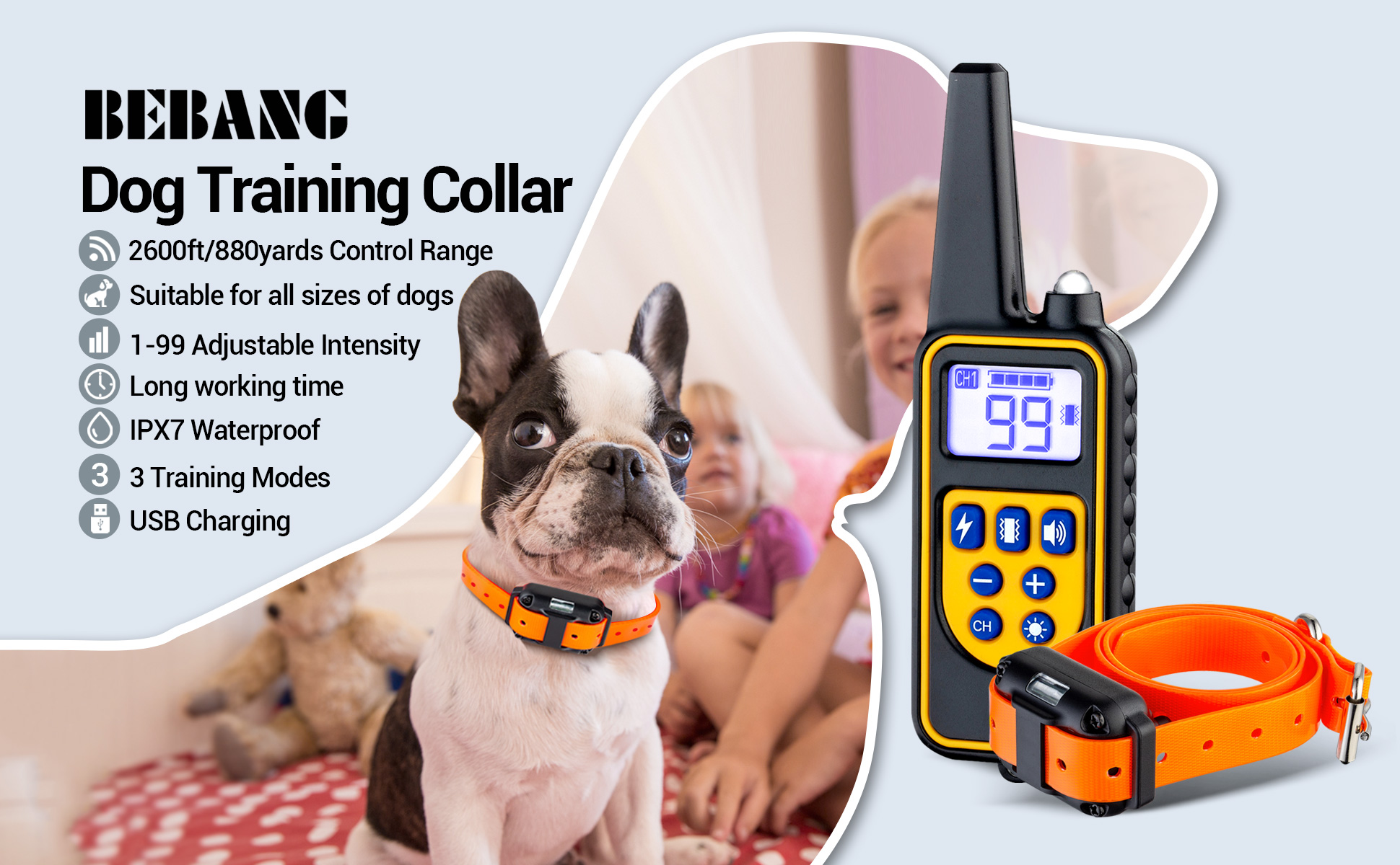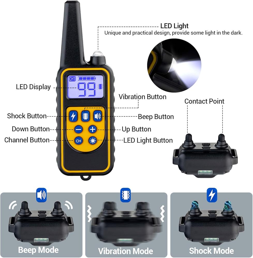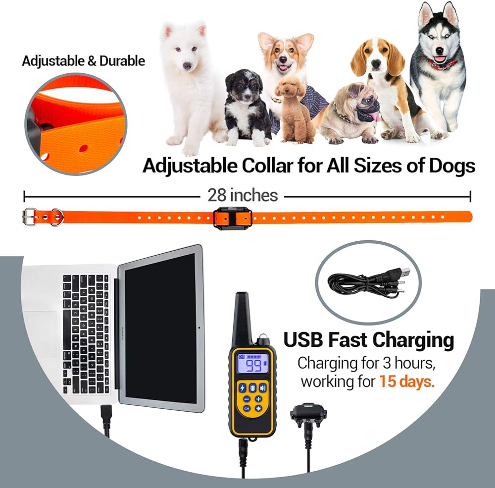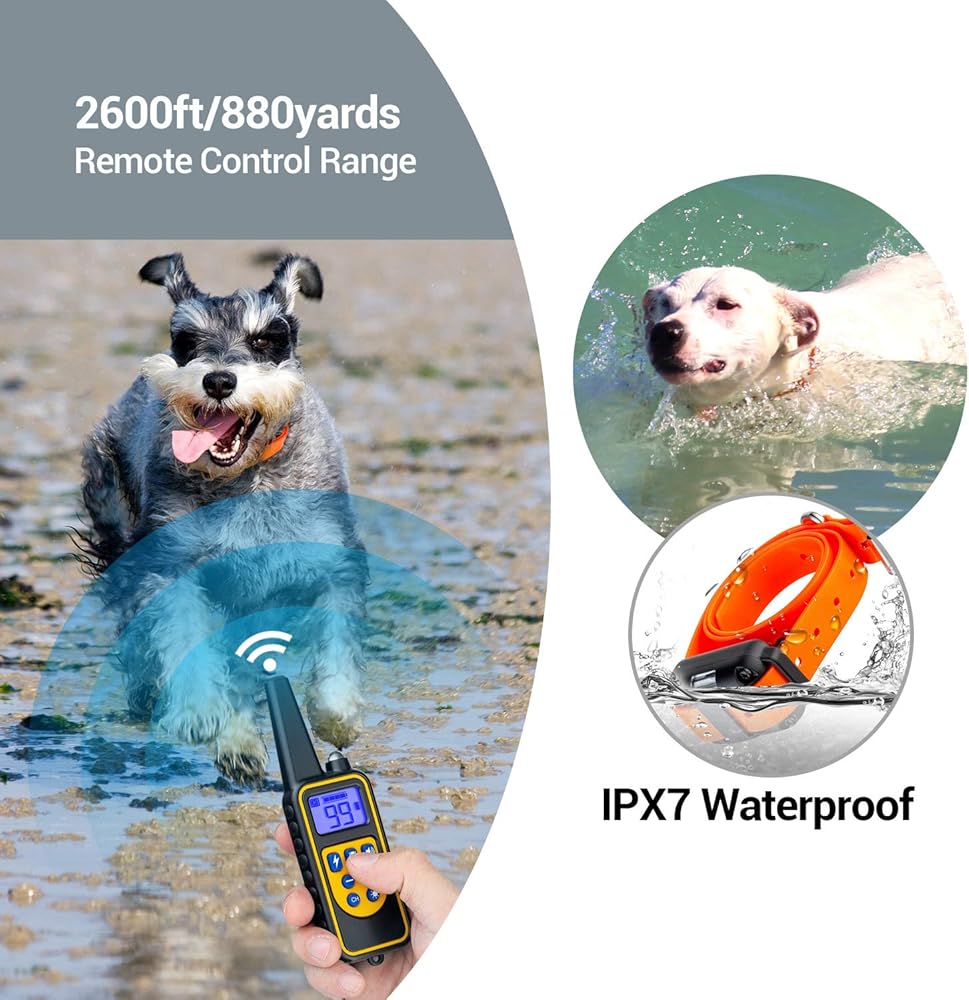 【نطاق تحكم يصل إلى 2600 قدم】- استخدم أحدث التقنيات التي يتم التحكم فيها بواسطة المعالجات الدقيقة، والتي تدعم مسافة تدريب تصل إلى 880 ياردة، مما يسمح لك بتدريب الكلاب في الحديقة أو الفناء الخلفي أو شاطئ البحر أو أي مكان آخر بسهولة وحرية.
