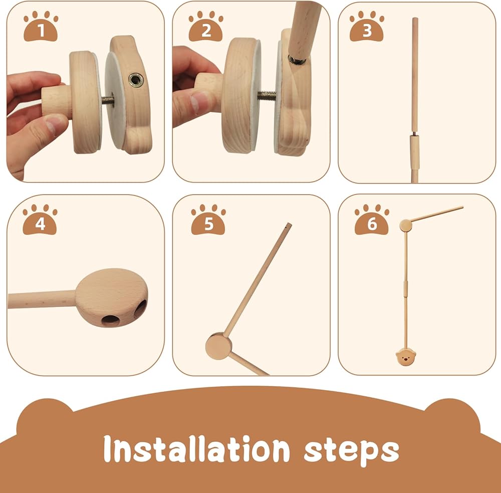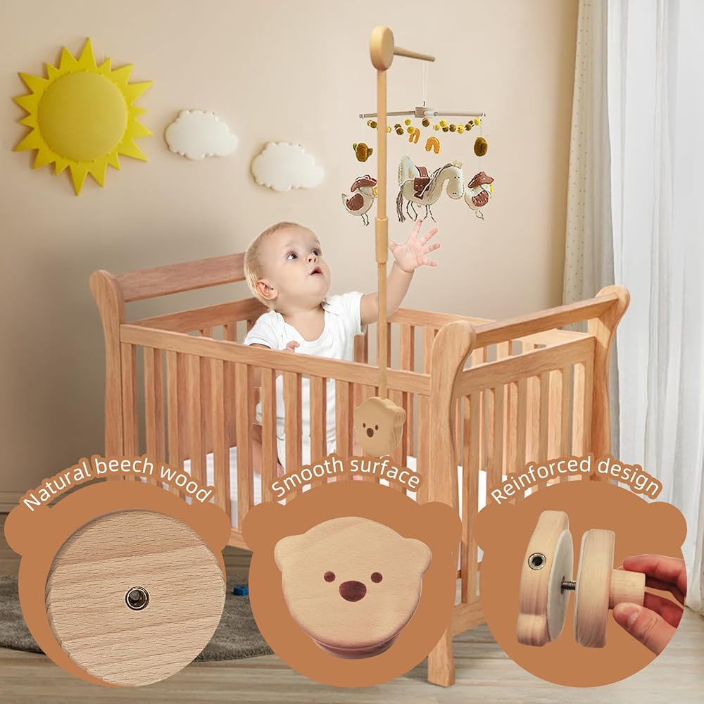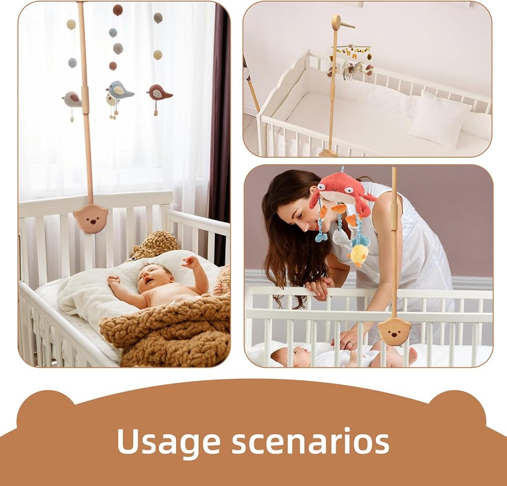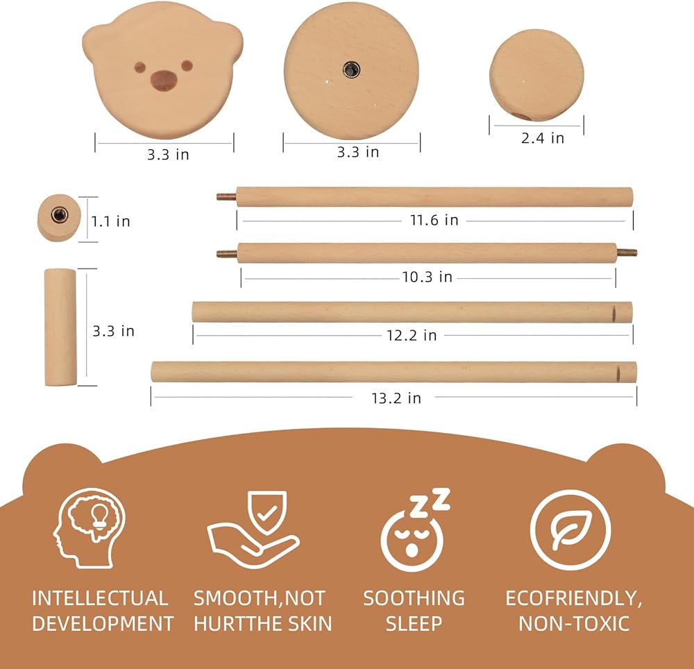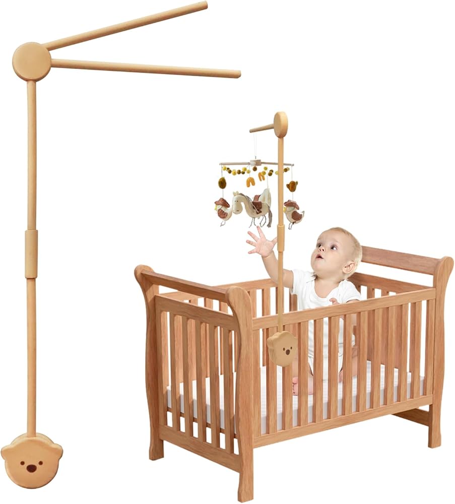 ذراع متنقل لسرير الأطفال من Qonmpcvu، حامل خشبي لسرير الأطفال، ذراع متنقل لسرير الأطفال، حامل هواتف محمولة قابلة للتعديل في الحضانة، مجموعة ألعاب جرس السرير آمنة ومضادة للانزلاق، إطار سرير على شكل دب
