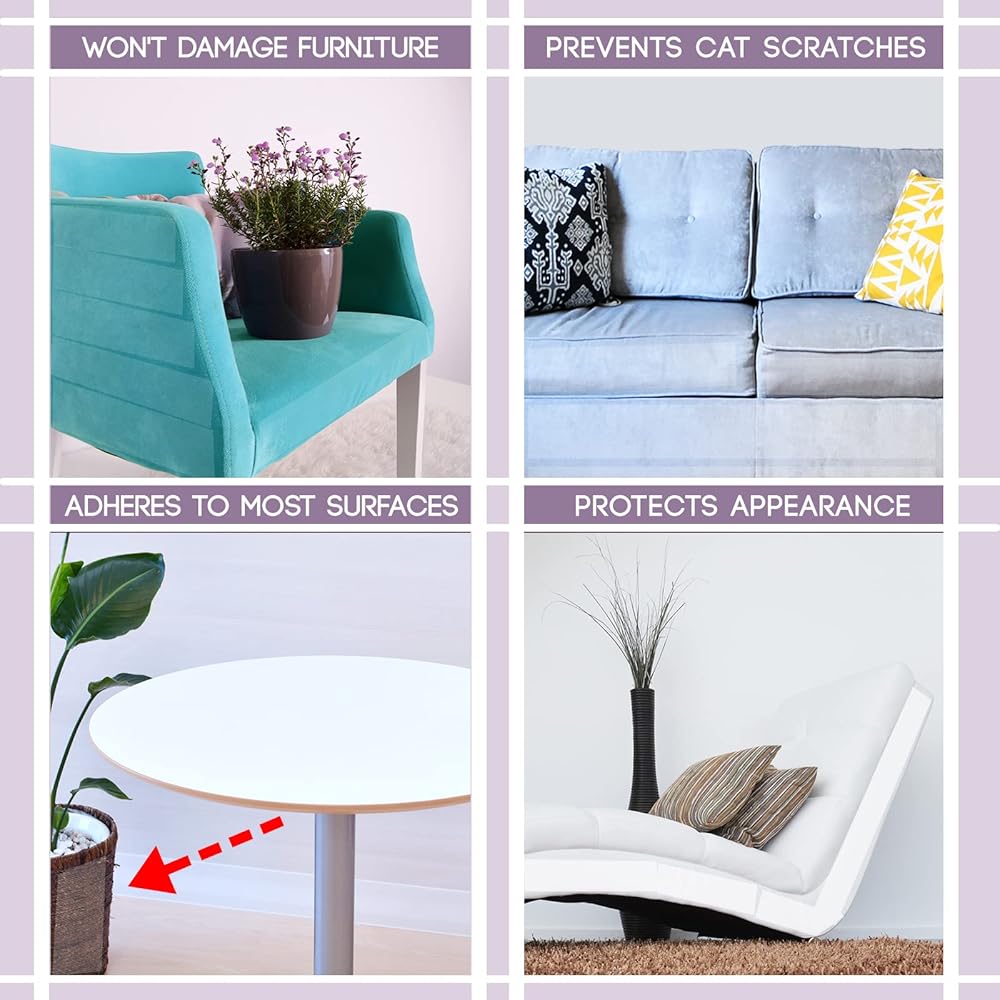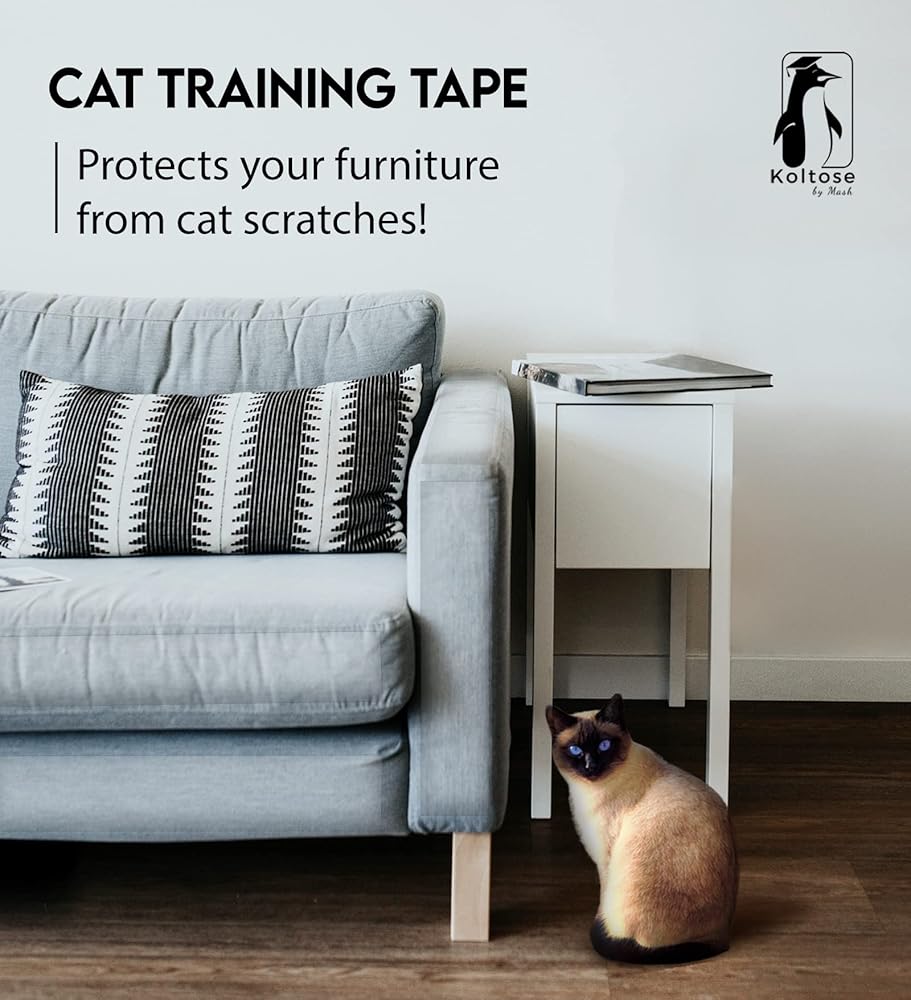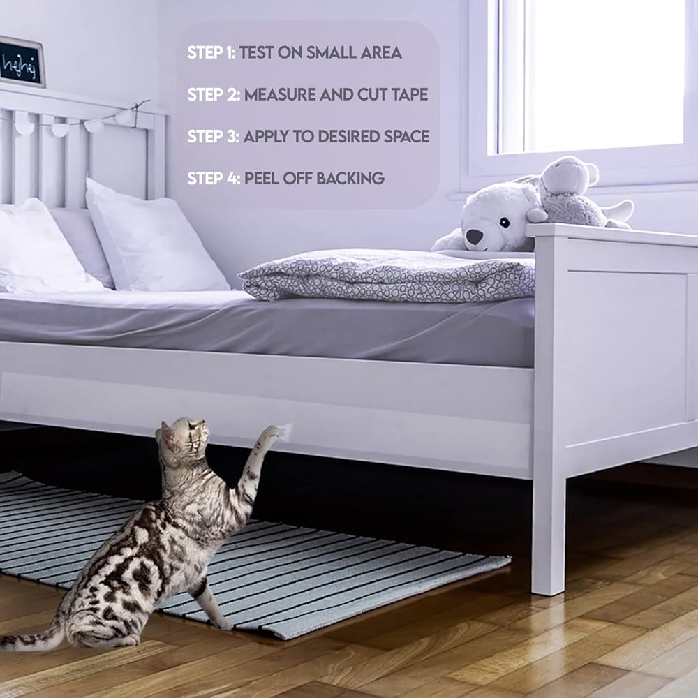 نظيف وغير مرئي - شريط تدريب القطط ذو الوجهين هذا شفاف وشفاف ومصمم ليلتصق بأي سطح. الشريط الشفاف المضاد للخدش مثالي للمزج مع الجزء الخلفي من الأرائك والكراسي والطاولات. لا يترك شريط تدريب القطط هذا أي بقايا ويمكن إزالته بسهولة من جميع الأسطح. تأكد من اختبار شريط صغير من الشريط على كل سطح قبل وضع شريط كامل.