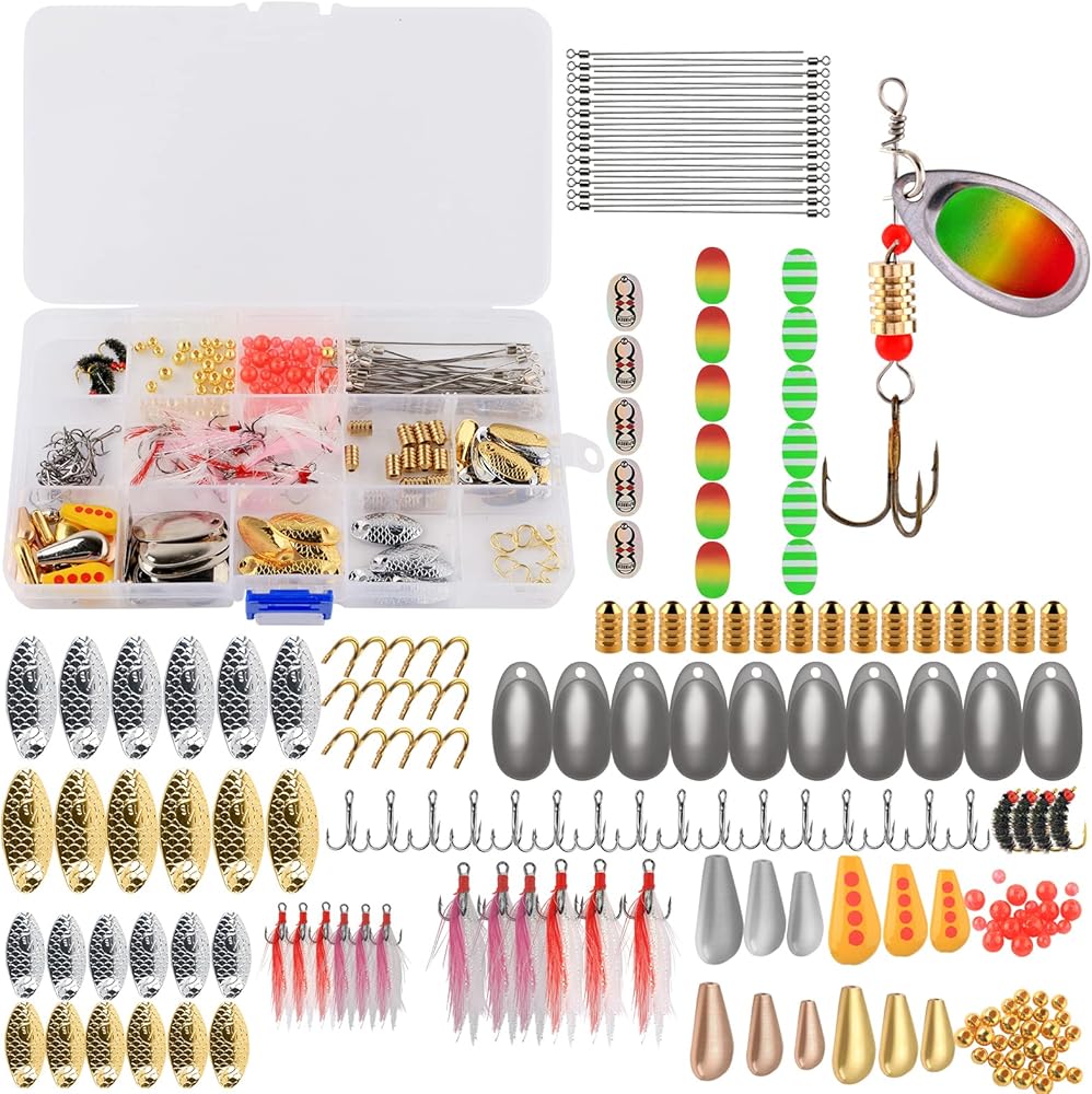 مجموعة أدوات صنع الطعوم الدوارة 228 قطعة من طُعم الصيد، ملحقات شفرة كليفيس، عمود سلكي، خطافات ثلاثية، مجموعة أدوات ملعقة صيد، هدية صيد السمك