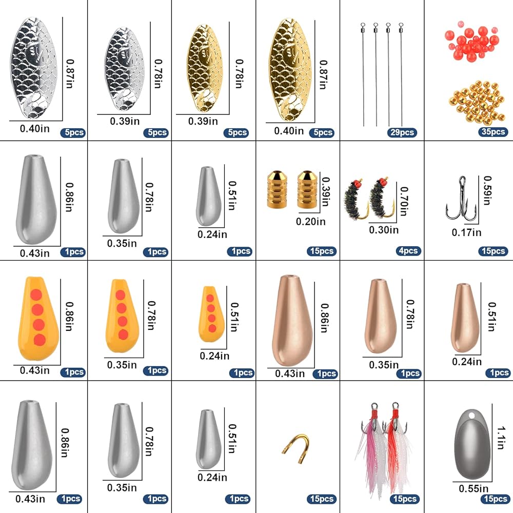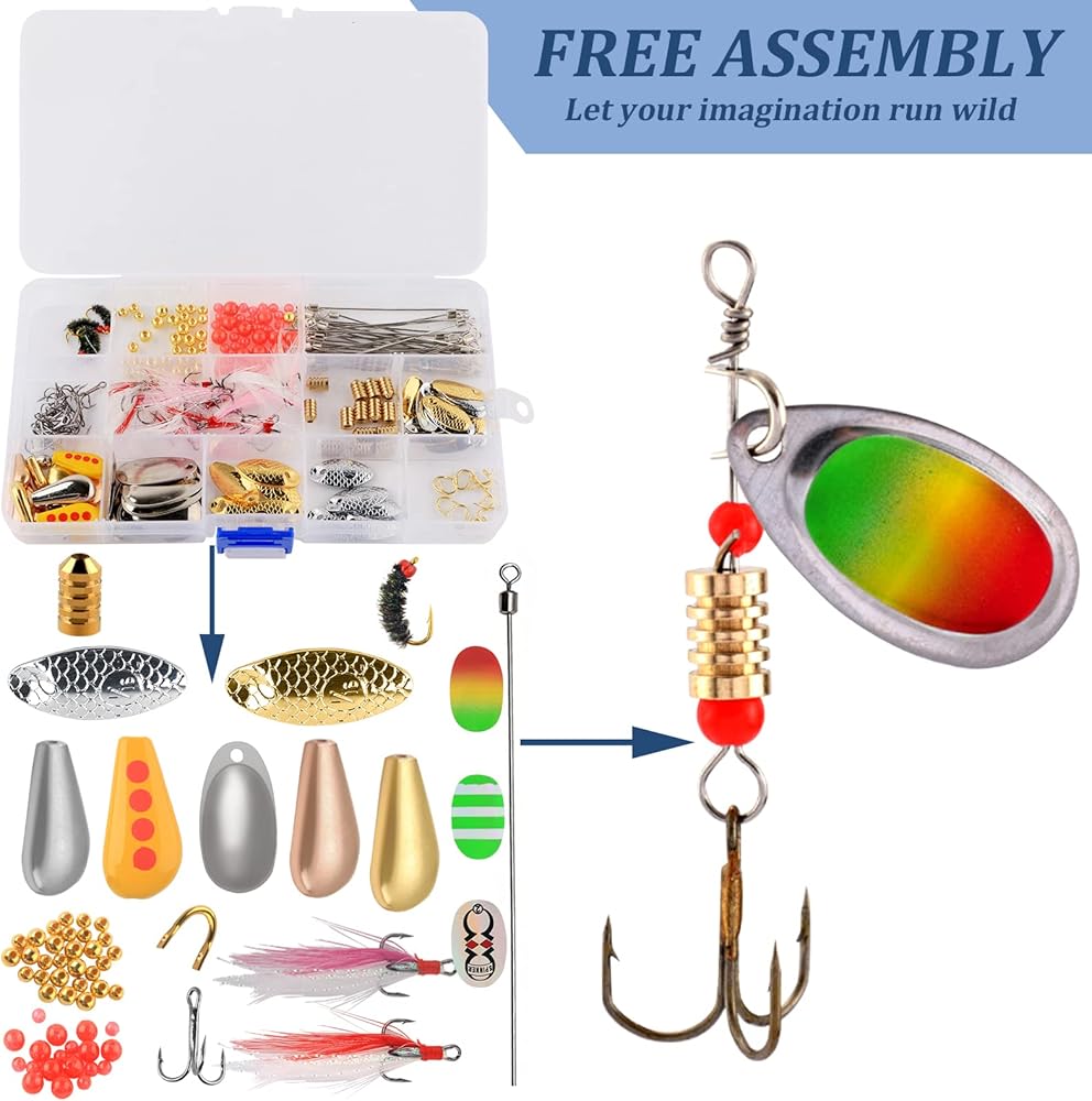 • 【مجموعة دوارة DIY】مجموعة صنع طُعم الصيد تتضمن 39 قطعة من الشفرات الدوارة، و15 قطعة من الخطافات الثلاثية، و29 قطعة من عمود السلك، و15 قطعة من الشق، و15 قطعة من أجسام الطُعم، و35 قطعة من الخرز الأحمر، و35 قطعة من الخرز النحاسي، و12 قطعة من أحواض الصيد، و4 قطع من ذباب الصيد، و12 قطعة من خطافات الريش، 17 قطعة من الملصقات، إجمالي 228 قطعة من ملحقات الصيد.