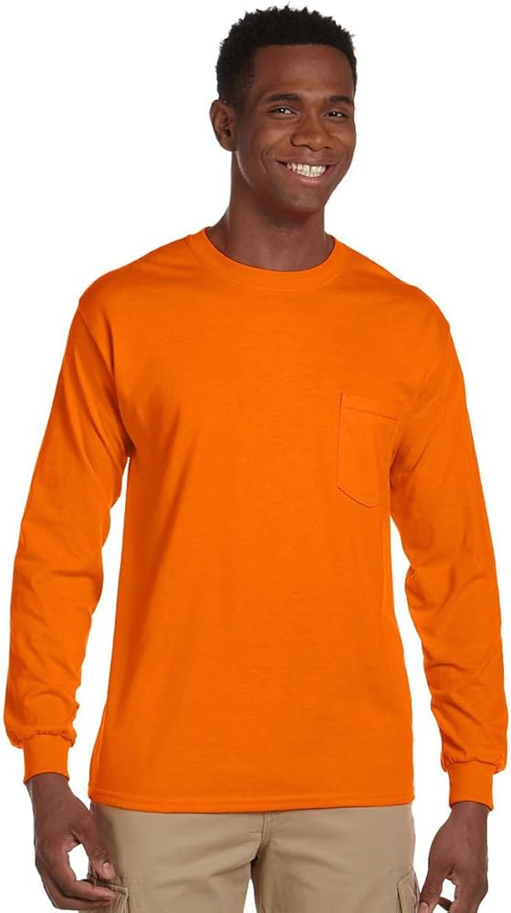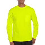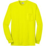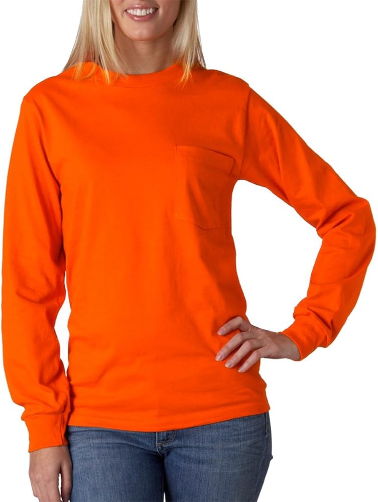 100% preshrunk cotton; Sport Grey is 90/10 cotton/poly; Safety (Green taped shoulder-to-shoulder, double-needle stitching throughout; five-point left-chest pocket; Sport Grey is 90/10; Safety Green and Safety Orange are 50/50; ?" collar; ribbed cuffs ;