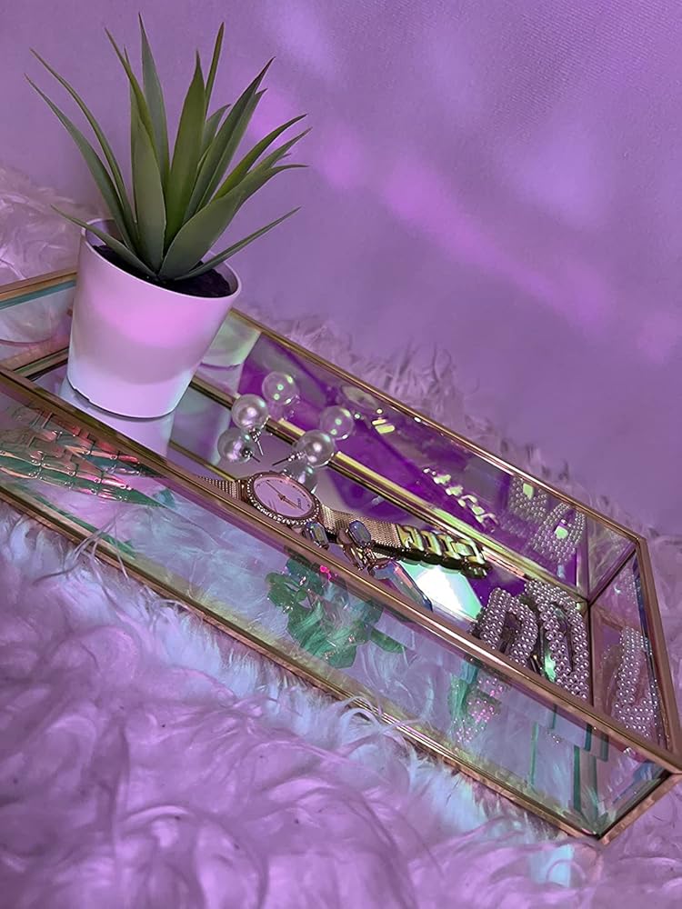 جودة رائعة: صينية الأكريليك قزحي الألوان هذه، زجاج قزحي الألوان، صندوق قزحي الألوان مصنوع من مواد عالية الجودة مع لمسة نهائية لامعة فاخرة. الجزء السفلي عاكس، مما يجعل من السهل تنظيفه.