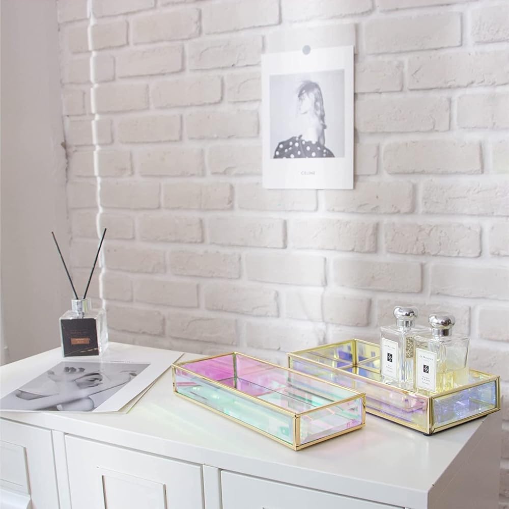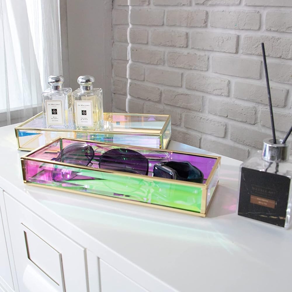 منظم متعدد الأغراض: يمكن استخدام منظم المكتب قزحي الألوان هذا كصينية تنظيم المجوهرات، وصينية تزيين الحمام، ومنظم صينية العطور، وصينية المكياج EDC.