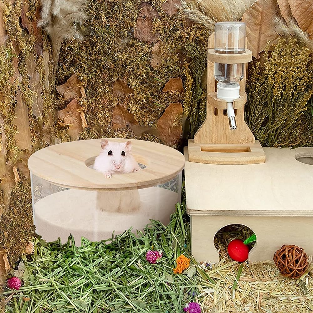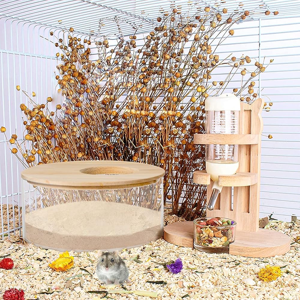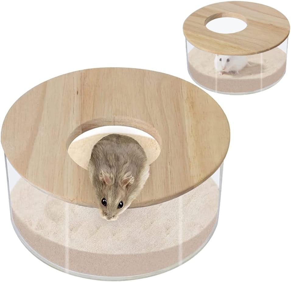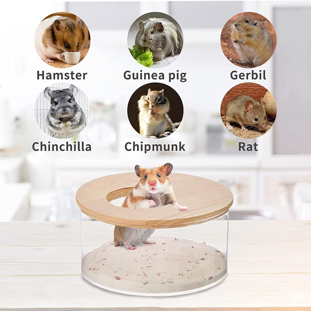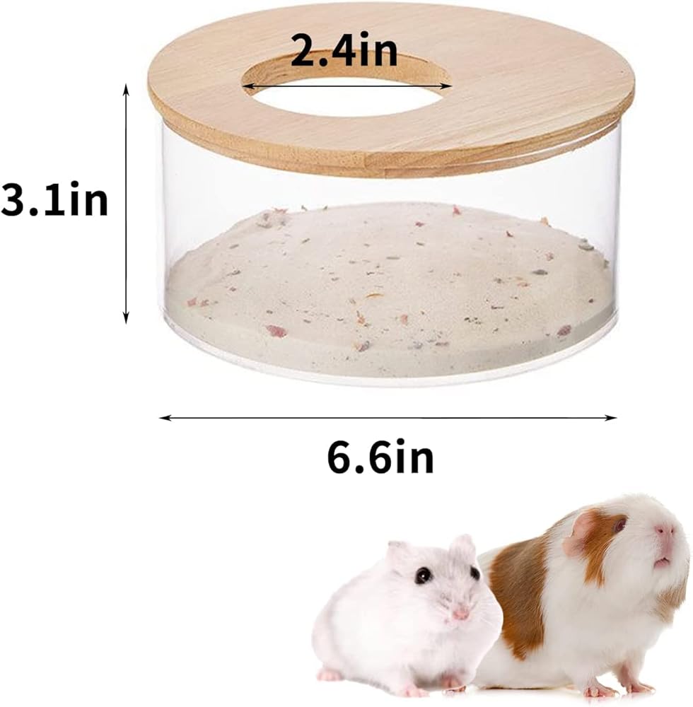 يتكون صندوق حمام رمل الهامستر أو حاوية حمام رمل الهامستر من هيكل أكريليك شفاف مع غطاء خشبي صلب مانع للتسرب مع فتحات، وهو أنيق وعملي. كحوض استحمام للهامستر/حمام الهامستر، حتى للحيوانات الأليفة للتنظيف واللعب، فهو أيضًا أفضل ملحق لتزيين قفص الحيوانات الأليفة، مما يزيد من رؤية قفص حيوانك الأليف.