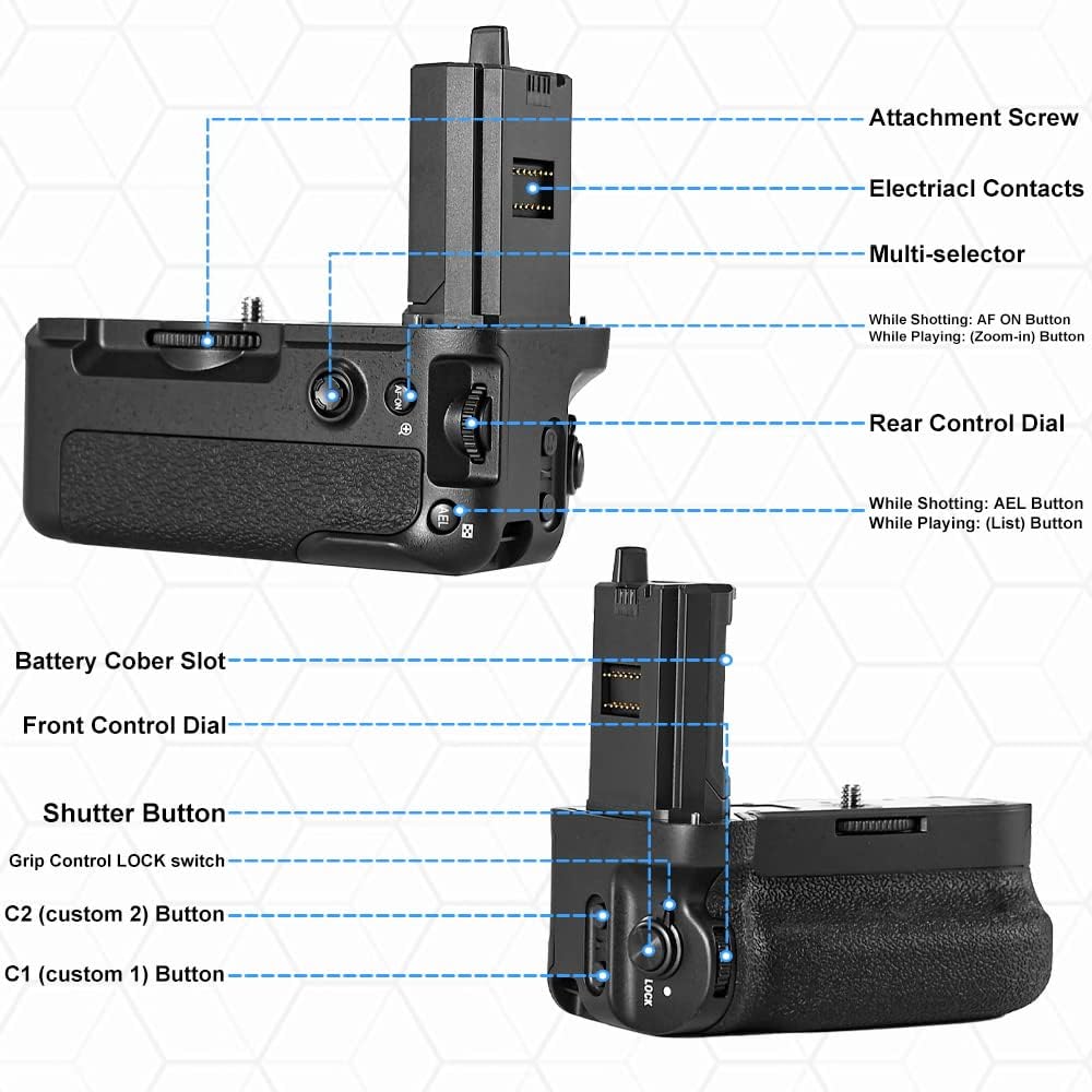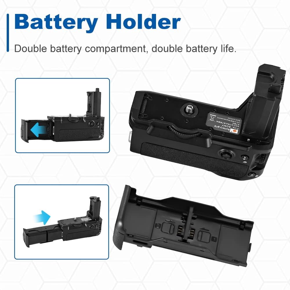 - المقبض متوافق مع كاميرات سوني A9II A7IV A7RIV A7SIII A1 BG A7IV لإطالة عمر بطارية الكاميرا لوقت تصوير أطول