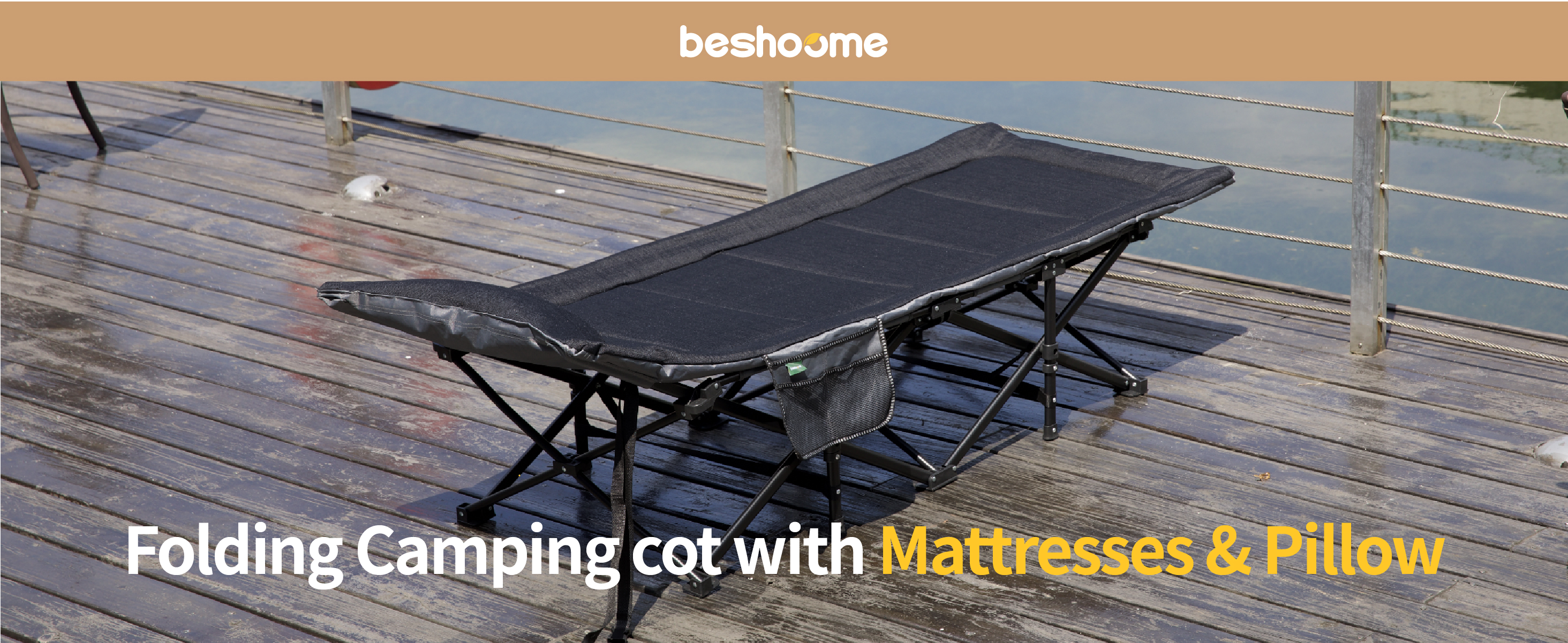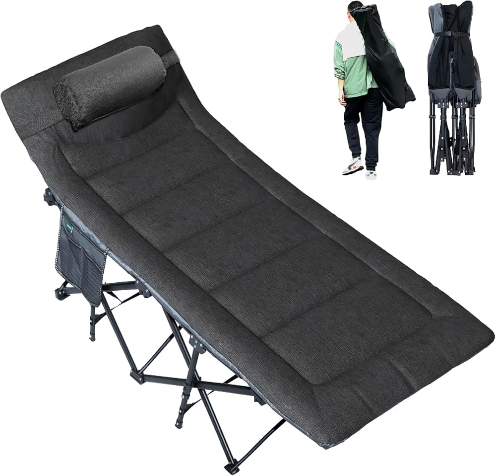 BESHOOME Folding Camping Cot, Camping Cot for Adults,Portable Cot for Sleeping with Pad and Pillow, Outdoor Bed for Traveling, Office Nap, Beach Vocation and Home Lounging, 450LBS(Max Load)