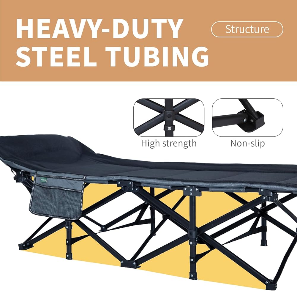 DURABLE FRAME: The adults camping cot is made of widen square anti-rust steel frame, durable 1mm thickened tubing and double layer Oxford cloth. It can hold up to 450LBS. Superior Strength, Water Resistance & Easy- Cleaning.