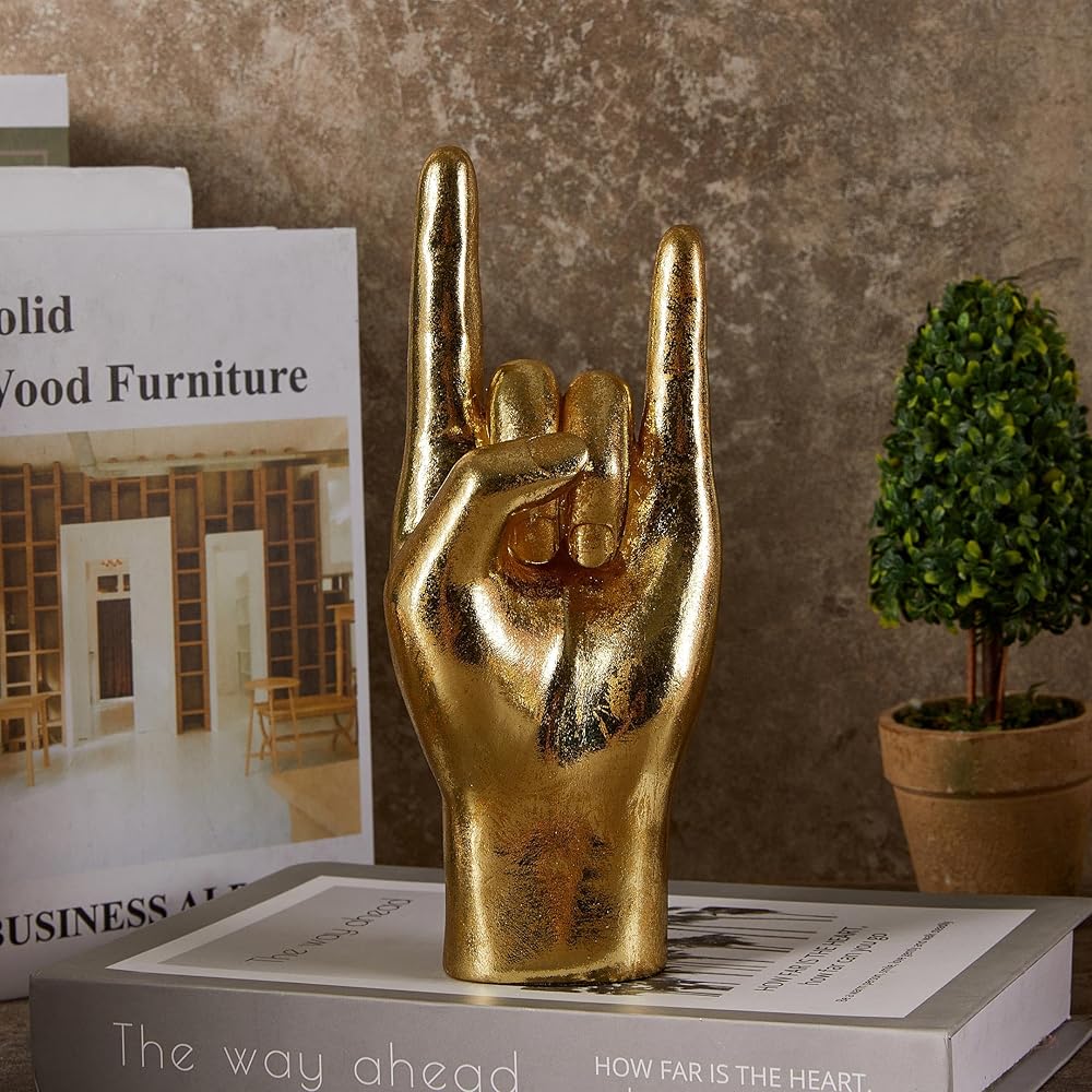 MicDecor Gold Decor ASL Hand Sign, Rock Hand Gesture Hand Sculpture Thanksgiving Day Christmas polyresin 7.8 Inch Figurine (JS0369)