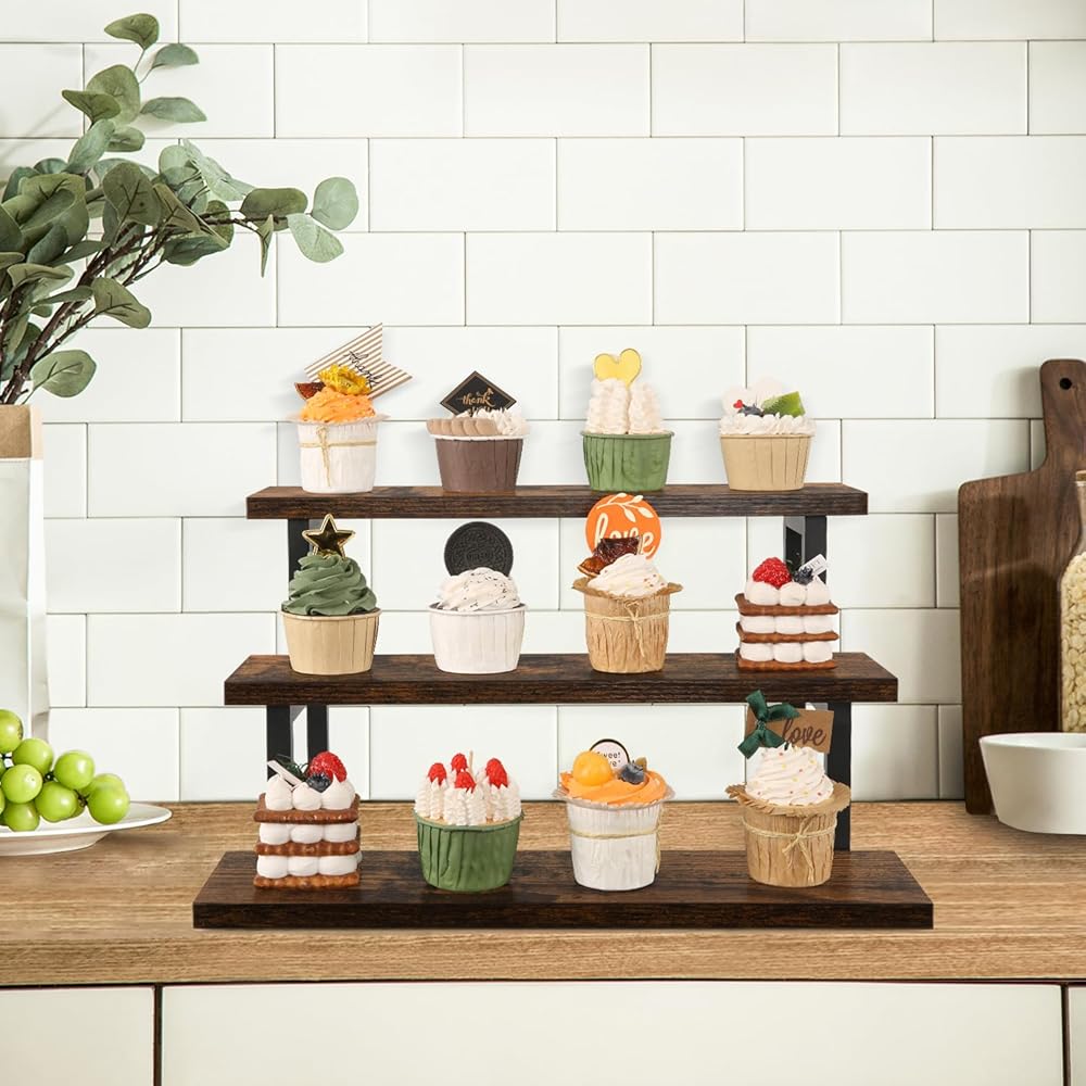 Convenient Design: The stepped design makes efficient use of your counter space. This wooden display riser is excellent for displaying toy figurines in cabinets, celebrating party desserts, and cosmetics on the dresser. The raised tiers help to create an eye-catching feature for your items.