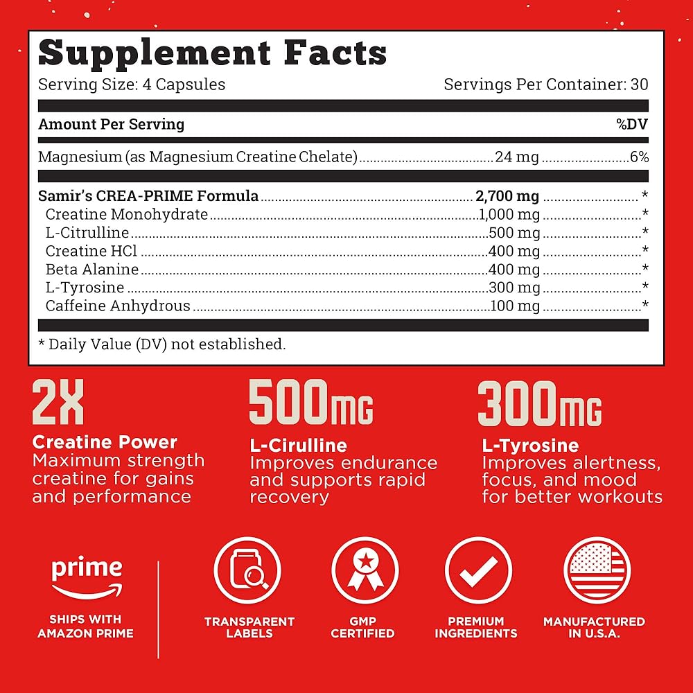 • Improved endurance: Extend training sessions and reduce muscle fatigue by replenishing ATP levels quickly. Crea-Prime supports enhanced endurance, allowing you to annihilate every rep with less fatigue.