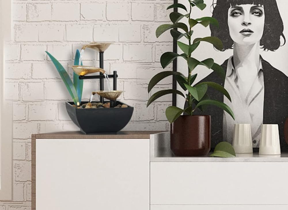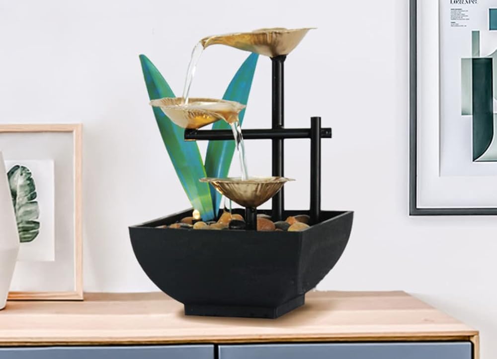 اكسشيلي نافورة سطح المكتب للاسترخاء في الطابق الثالث من الداخل، ديكورات مبتكرة للمكتب المنزلي، نافورة مياه جري، عجلة فينغ شوي، زخارف ترطيب، مضخة اوتوماتيكية مع مفتاح طاقة