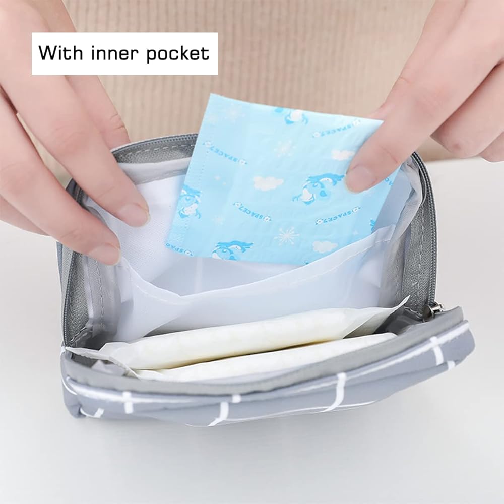 • سهلة الحمل والاستخدام، ويمكن إعادة استخدامها. يمكن أن تحمل 4-8 مناديل صحية.