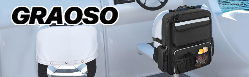 منظمات وتخزين القوارب المقاومة للماء من GRAOSO، حقيبة حمل للمقعد الخلفي للقارب بمقبض مطاطي وحزام خلفي قابل للتعديل، جيوب متعددة لإكسسوارات القوارب، أسود