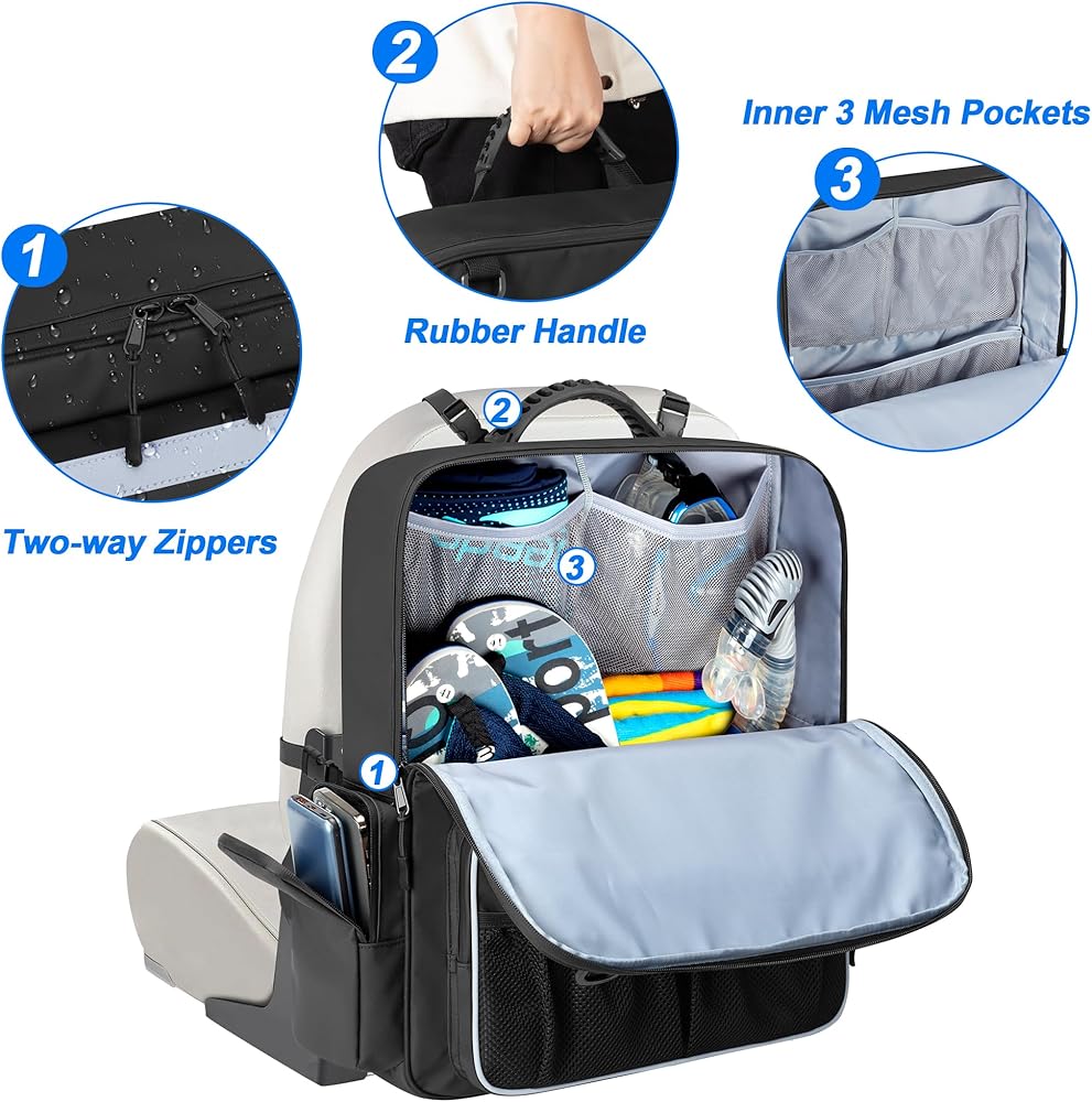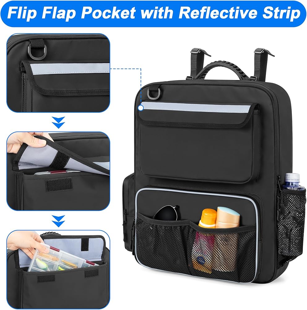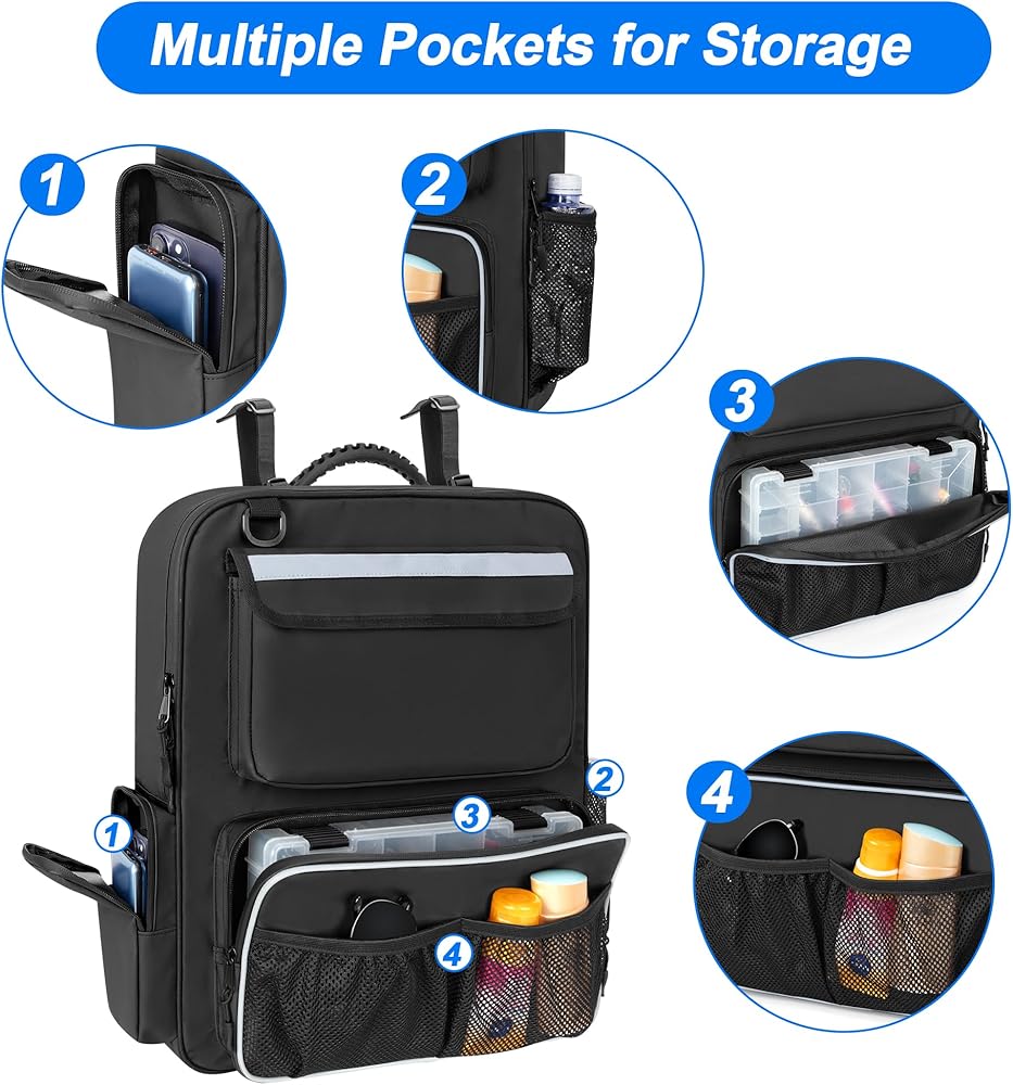 LARGE CAPACITY: The boat storage bag for seat has a large compartment with 3 inner mesh pockets to keep life jackets, clothes, shoes tidy. 2 front pockets and 2 side pockets to hold water bottle, sunglasses, fishing tackle box, tool kit and other boat necessities.
