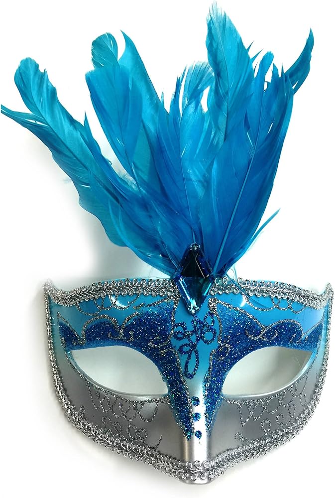 • Features: Metallic ice blue feathered mask