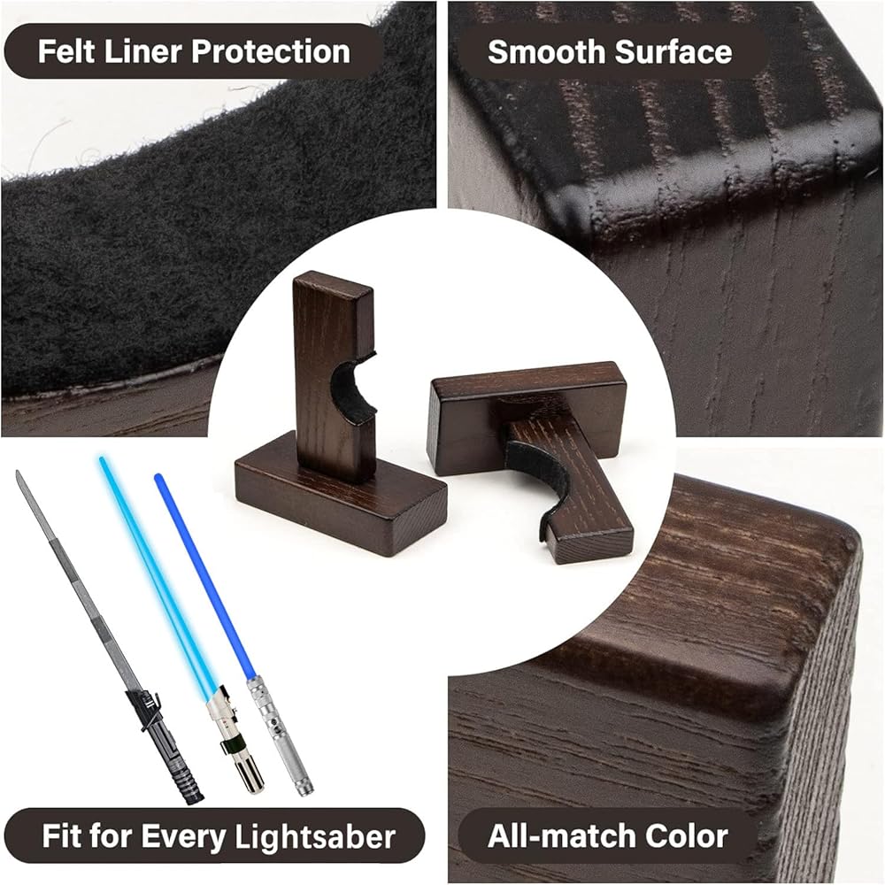 ★بطانة ناعمة: الجزء المقعر من حامل الشماعات مغطى ببطانة ناعمة لحماية السيف الضوئي من الخدوش أو التلف والاحتفاظ به بشكل أفضل.