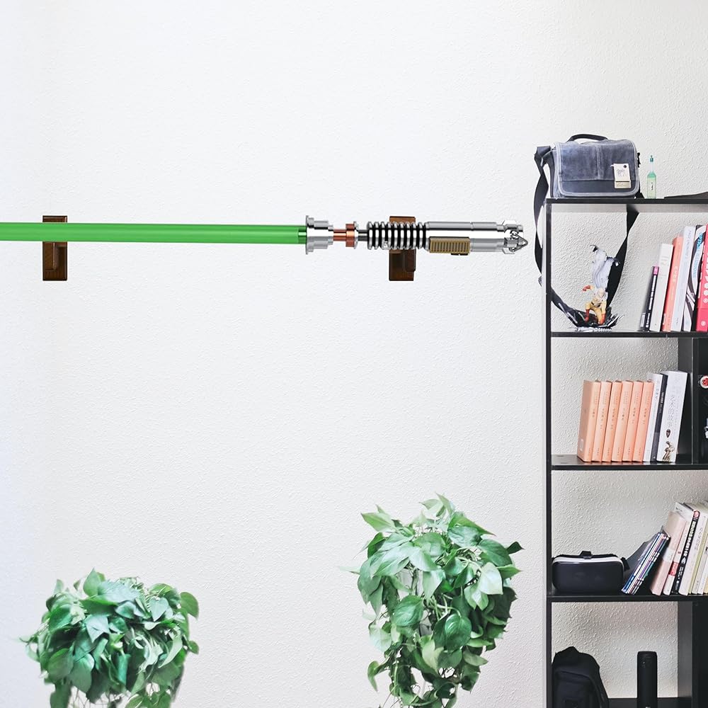 ★ ثابت بإحكام: يسمح لك بضبط الحامل على أي مسافة ليناسب السيف الضوئي المفضل لديك، مثبت على الحائط. يمكنك عرض السيف الضوئي أفقيًا على جدار منزلك أو مكتبك.