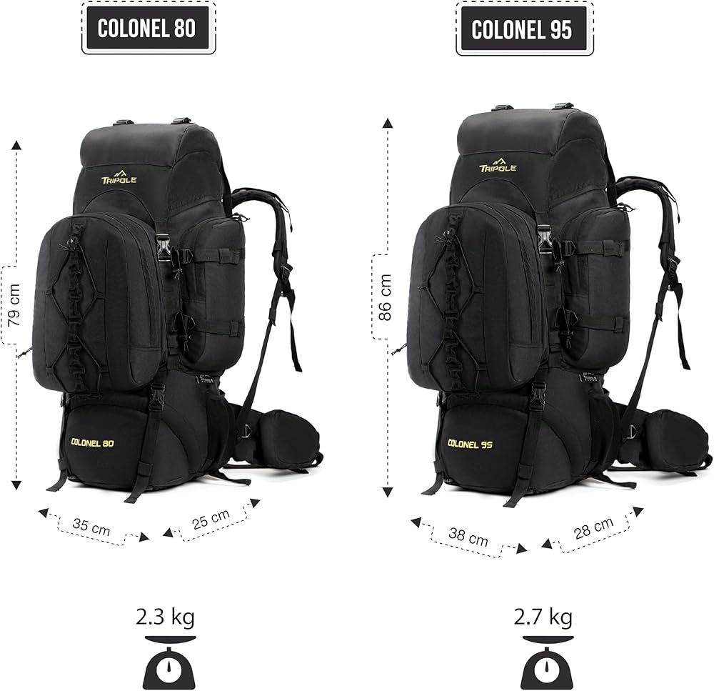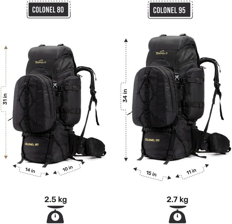 Ideal for long duration hikes or travel lasting between 12-20 days depending on the size you chose. The rucksack comes with a detachable day pack that can be taken apart for day hikes or short trips. Colonel Series has been built for durability and made for rough usage. The base pads and dual fabric coating at the bottom complement it and makes it ideal for rough terrain. Soft breathable cushioning on the back provides comfort and easy air flow while walking for long hours. Flexible waist belt can be adjusted to fit below the pelvis for load management and the torso adjustment mechanism makes it fit for multiple physiques. Equipped with an internal frame system made of fiber padding and two metal rods, multiple straps and cords for holding additional gear and stitched using 1200D water-proof and water-repellent polyester, the Colonel Series rucksack is a multi utility rucksack built for carrying excessive luggage comfortably.